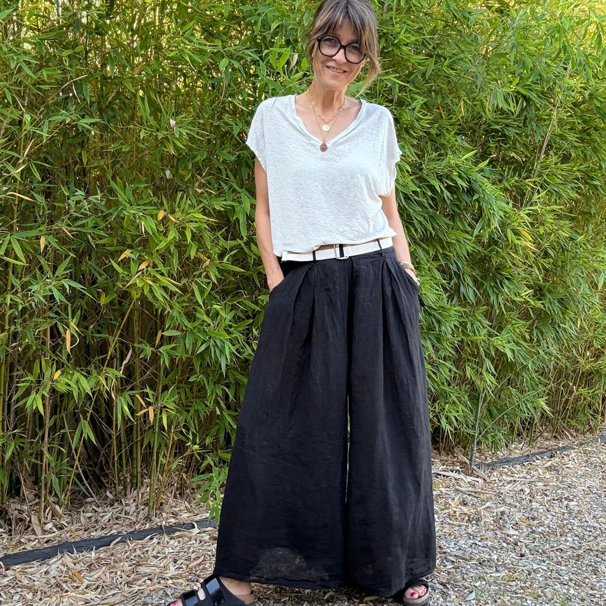 Pantalon Dina 100% lin – noir, kaki, chocolat, beige, bordeaux ou marine