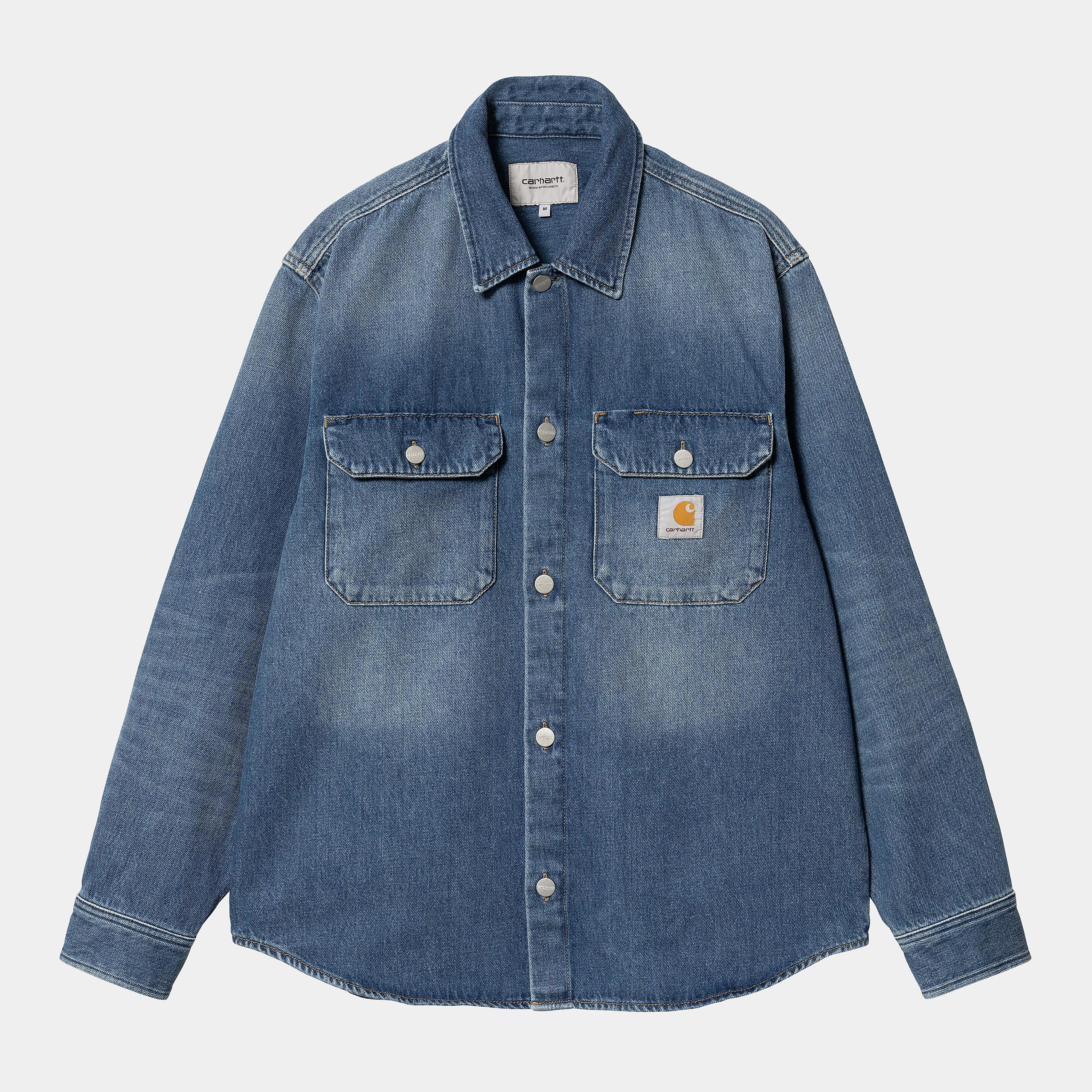 Veste Carhartt Wip HARVEY SHIRT JACKET Blue Rinsed