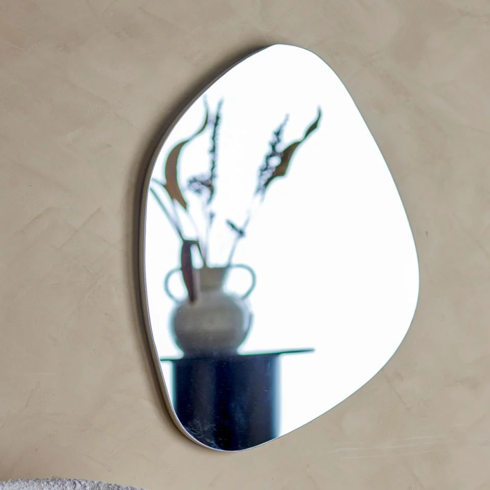 Le miroir mural Aimie de Bloomingville est un miroir décoratif de forme organique. Le bord fin en argent est presque invisible, ce qui lui donne une belle apparence flottante.