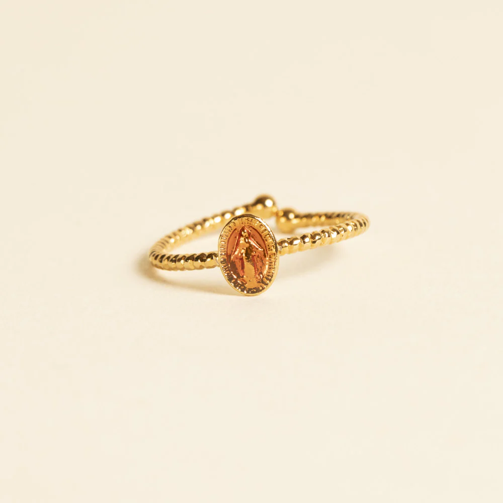 Les bagues Ivor se composent d’une médaille Vierge Miraculeuse émaillée à la main sur un anneau ajustable torsadé et se déclinent en 8 coloris d’émail.
