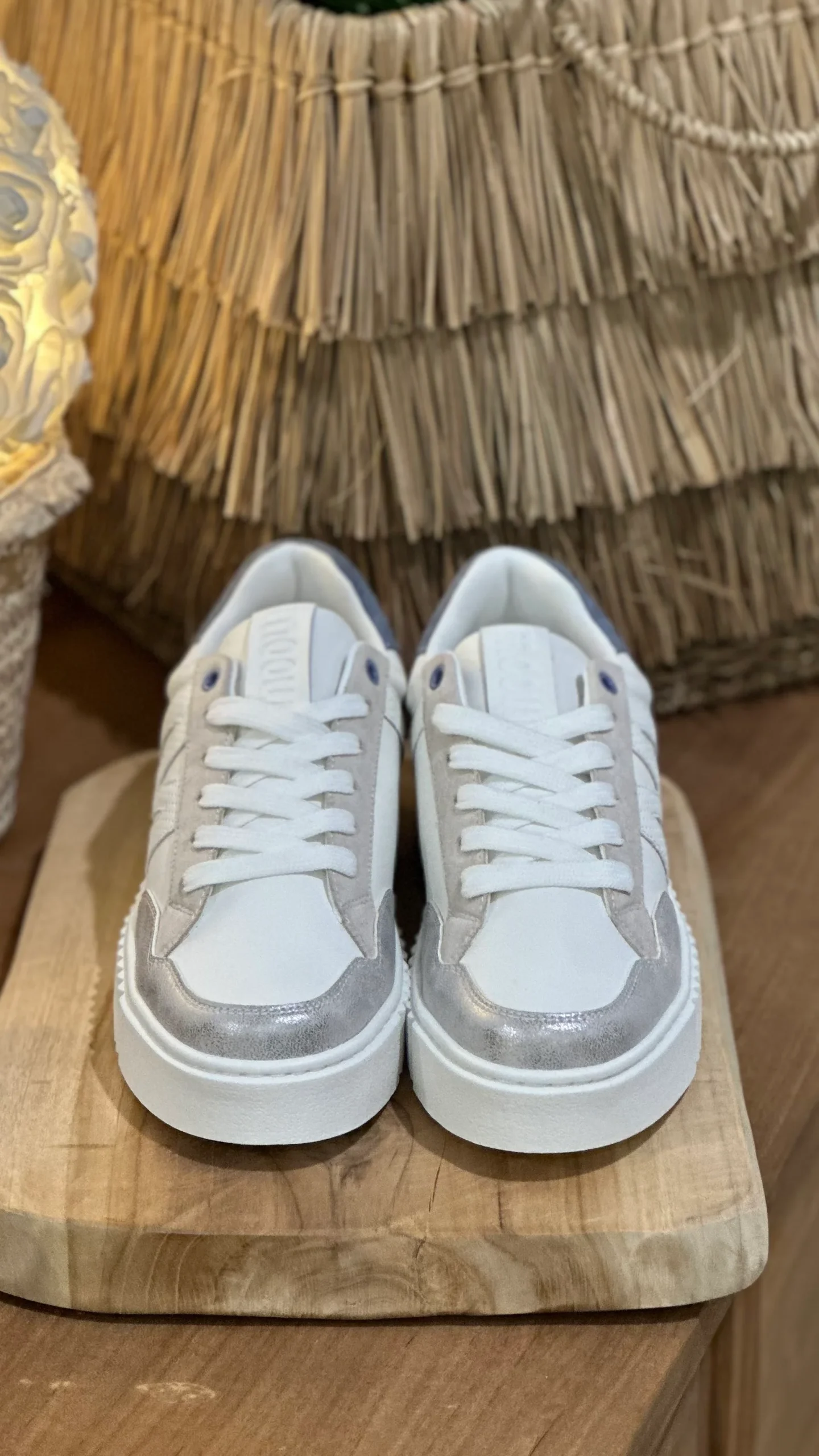 - Couleurs élégantes : Un subtil mélange de blanc, gris et bleu denim au talon, parfait pour un look épuré et tendance.