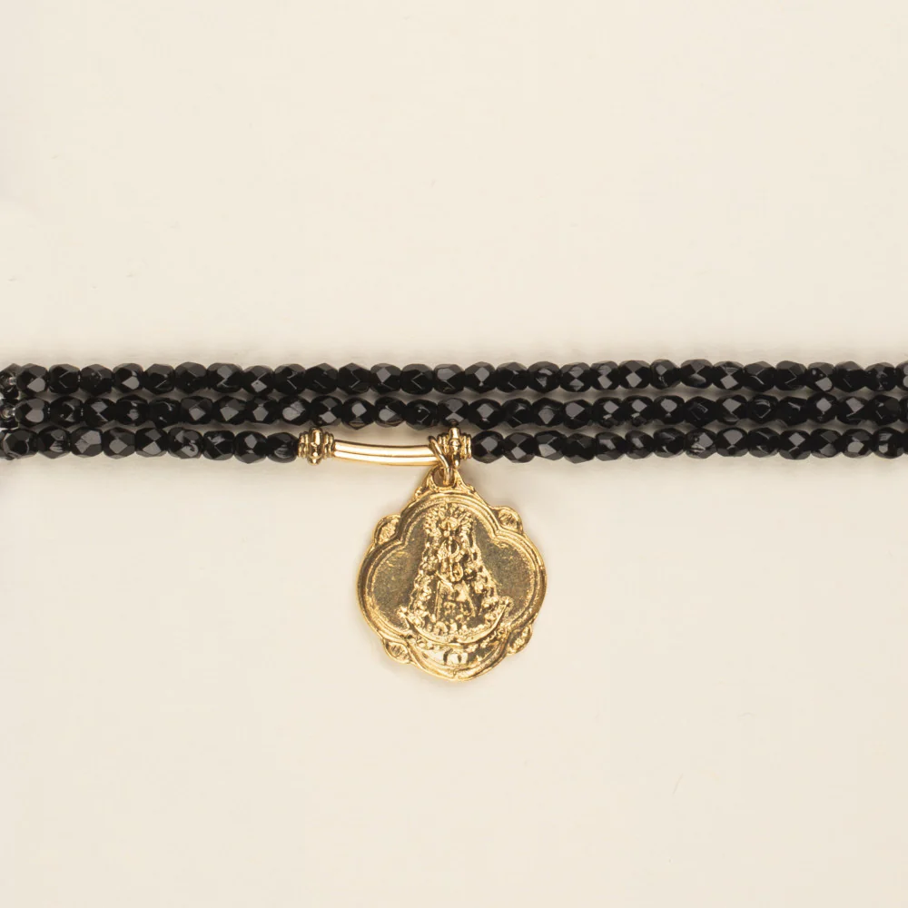 Les perles de Bohême se marient à merveille avec la médaille représentant la Vierge d’El Rocio, symbole d’amour et de protection.