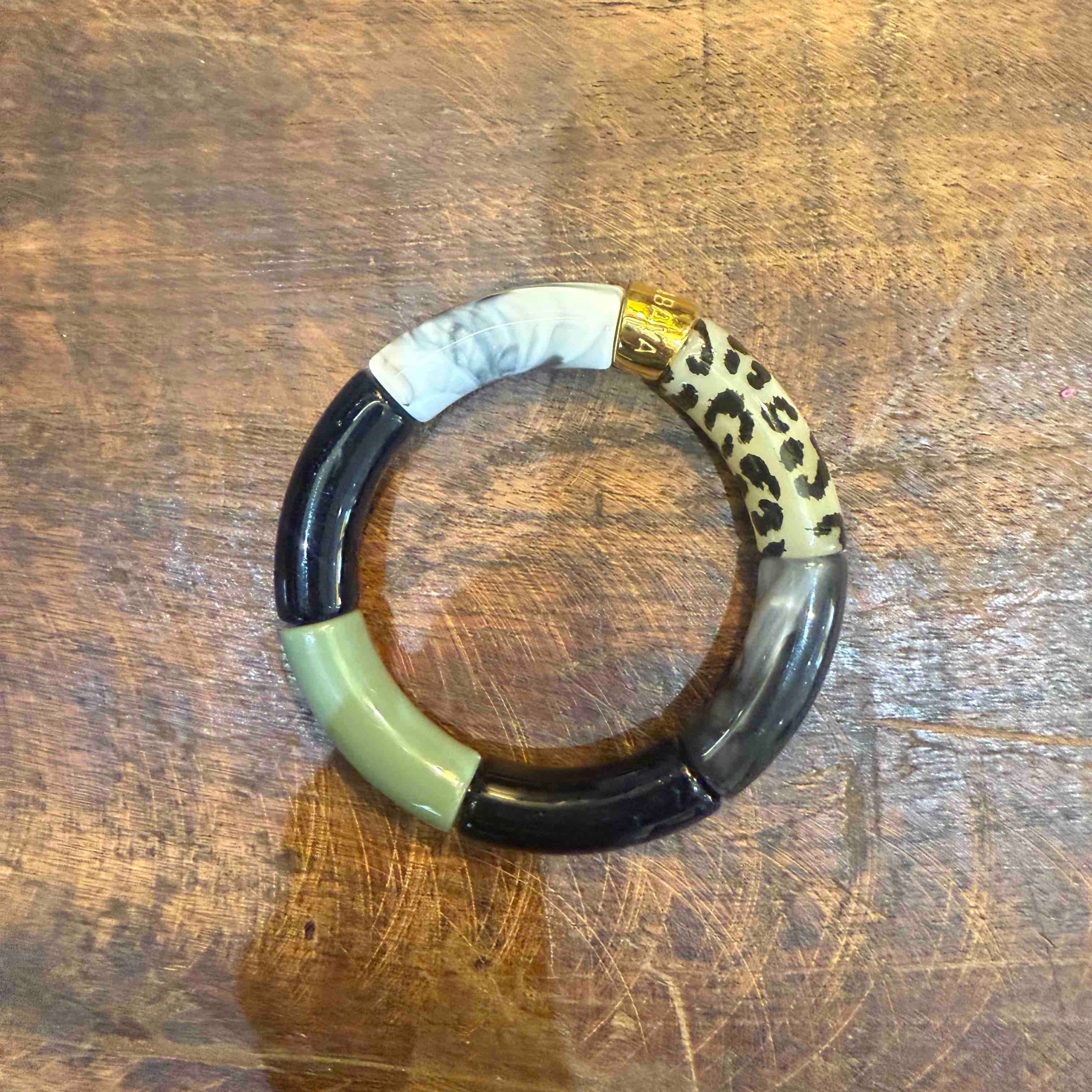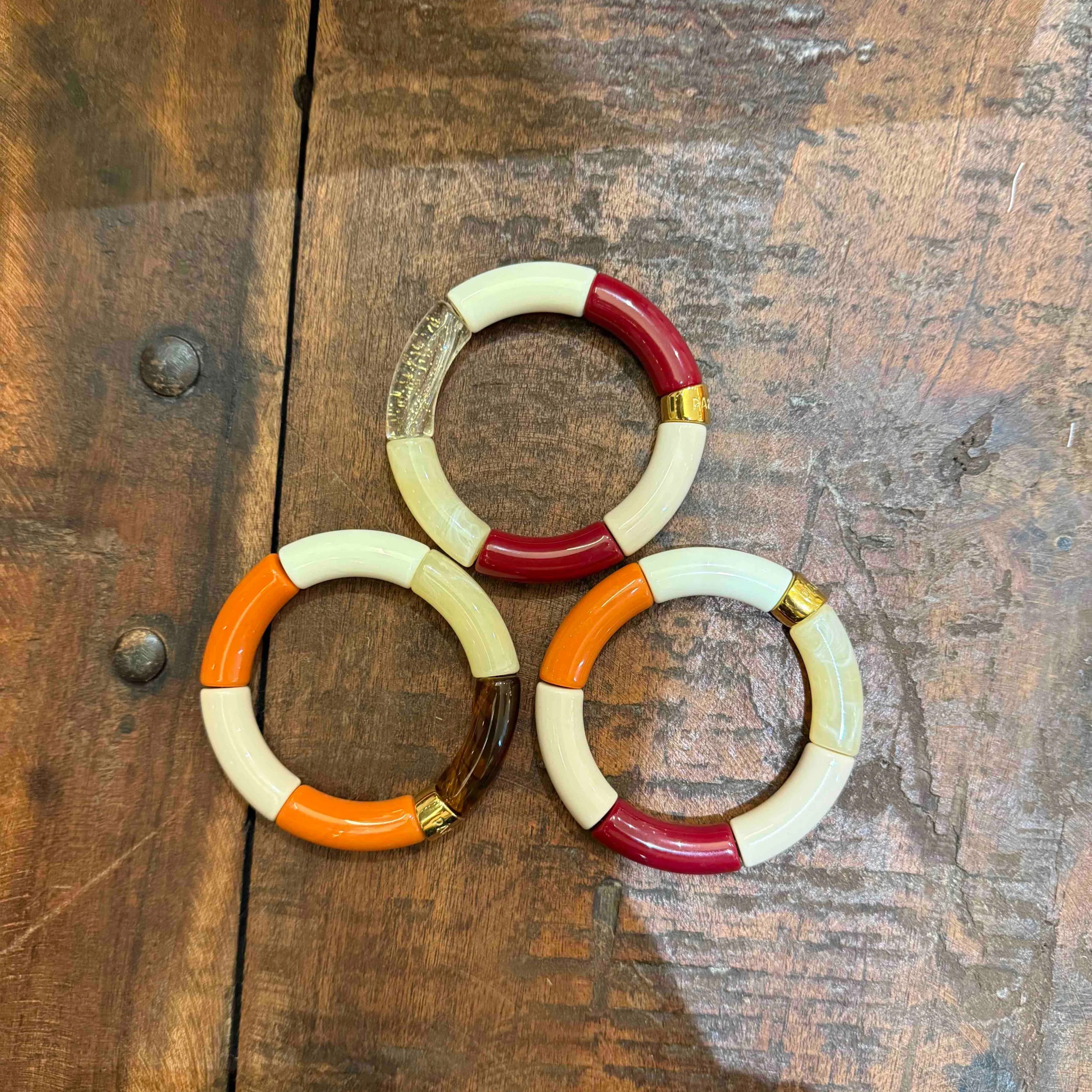 Les bracelets sont composés de 6 perles en acrylique ou résine de très belle qualité et une perle gravée PARABAYA en acier doré à l’or fin.