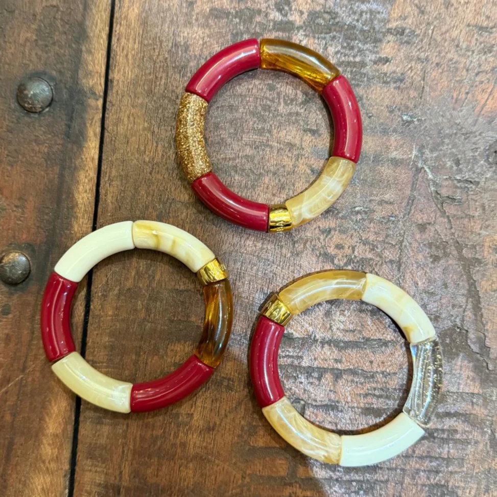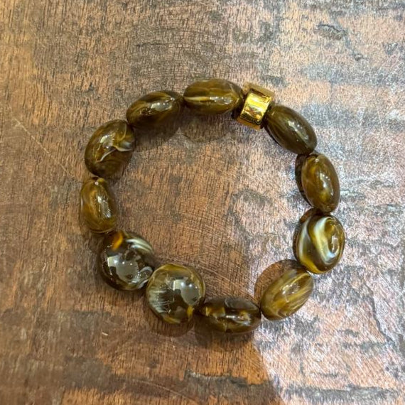 Les bracelets sont composés de 6 perles en acrylique ou résine de très belle qualité et une perle gravée PARABAYA en acier doré à l’or fin.