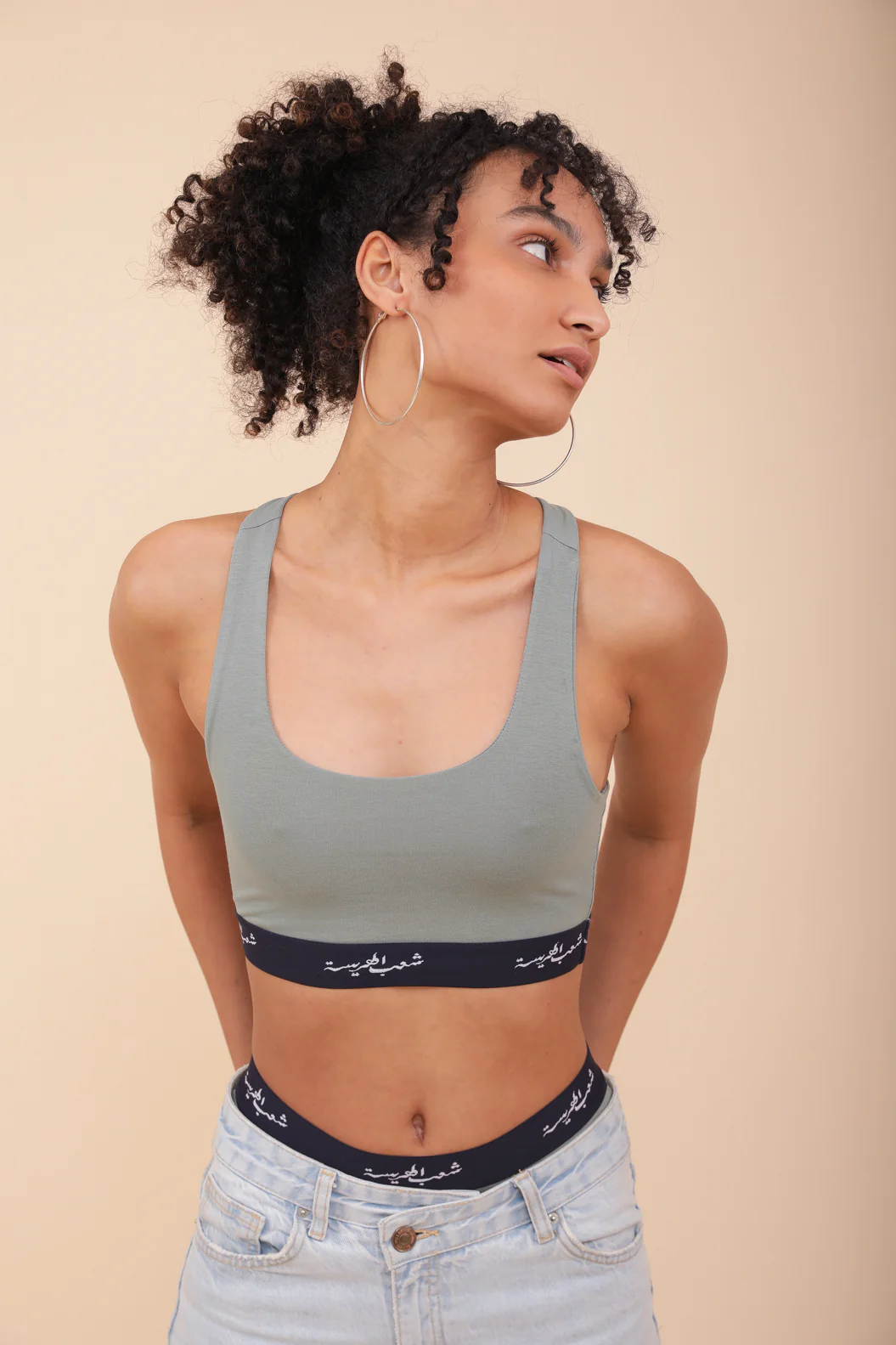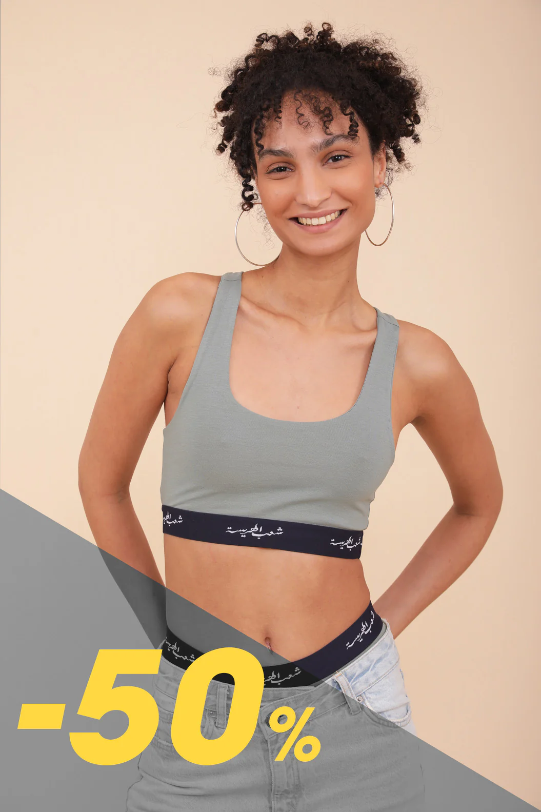 Confort ++, spiciness +++ – Brassière en coton mélangé super extensible– Encolure arrondie et dos nageur– Bonnets doux, sans rembourrage– Base élastique ‘Harissa People’ en calligraphie arabe offre un soutien optimale tout en ajoutant la touche spicy de LYOUM– Couleur : vert Conçue pour allier fonctionnalité et esthétique, cette brassière est essentielle pour le sport […]