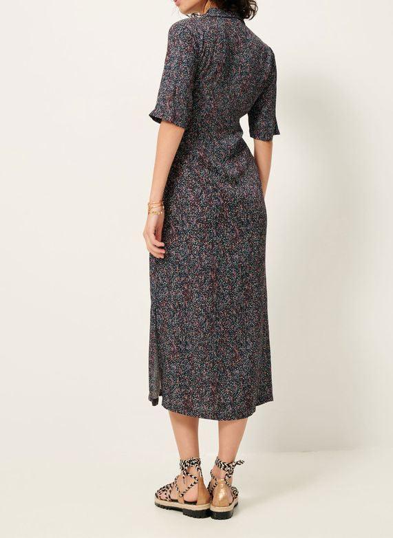 Robe chemisier mi-longue nouée à la taille en crêpe fluide de viscose.