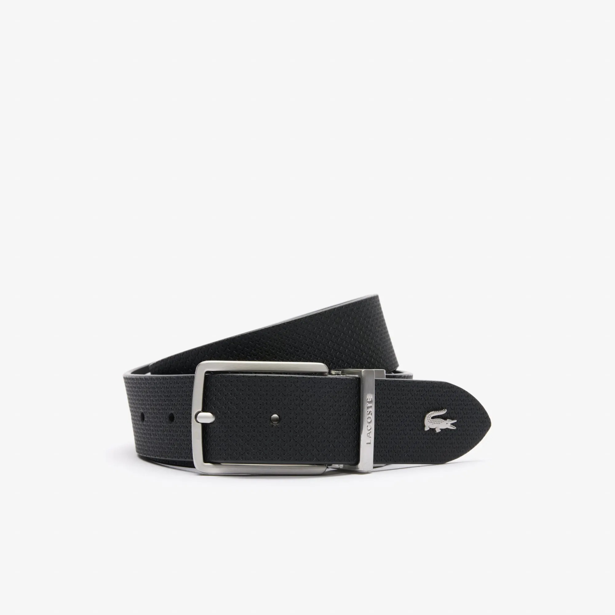 - Une ceinture en cuir de vachette lisse réversible (Une face noire et une face marron)