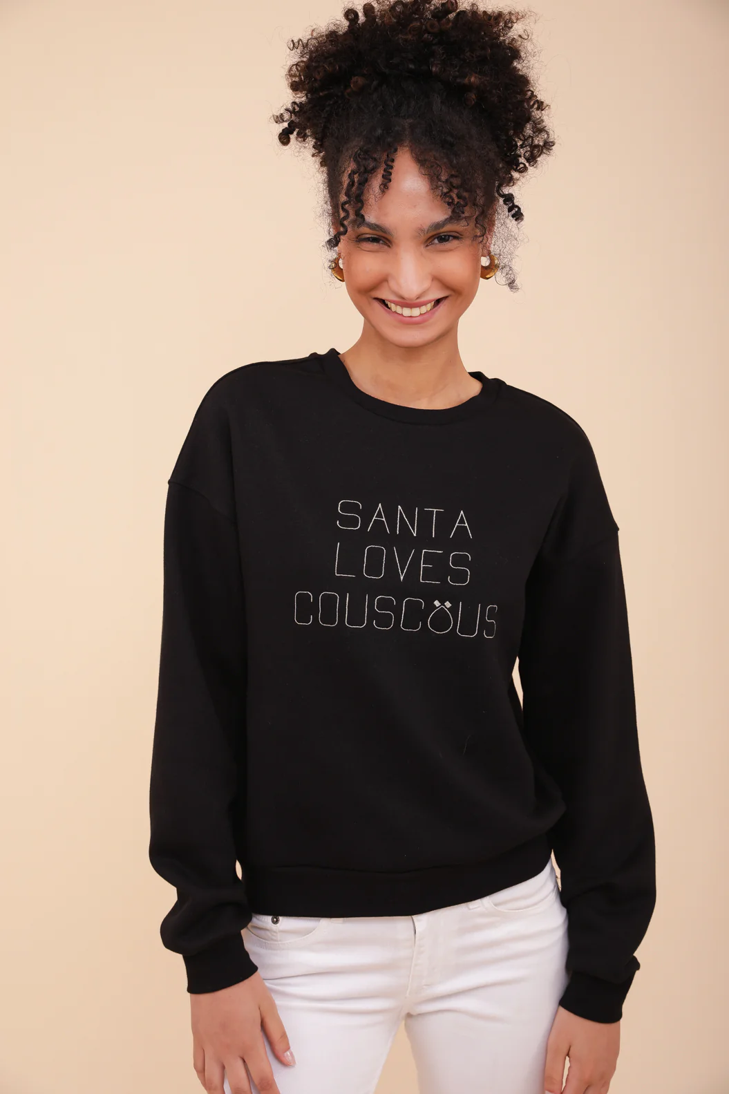 – Broderie ‘Santa loves Couscous’ sur le devant, couleur doré