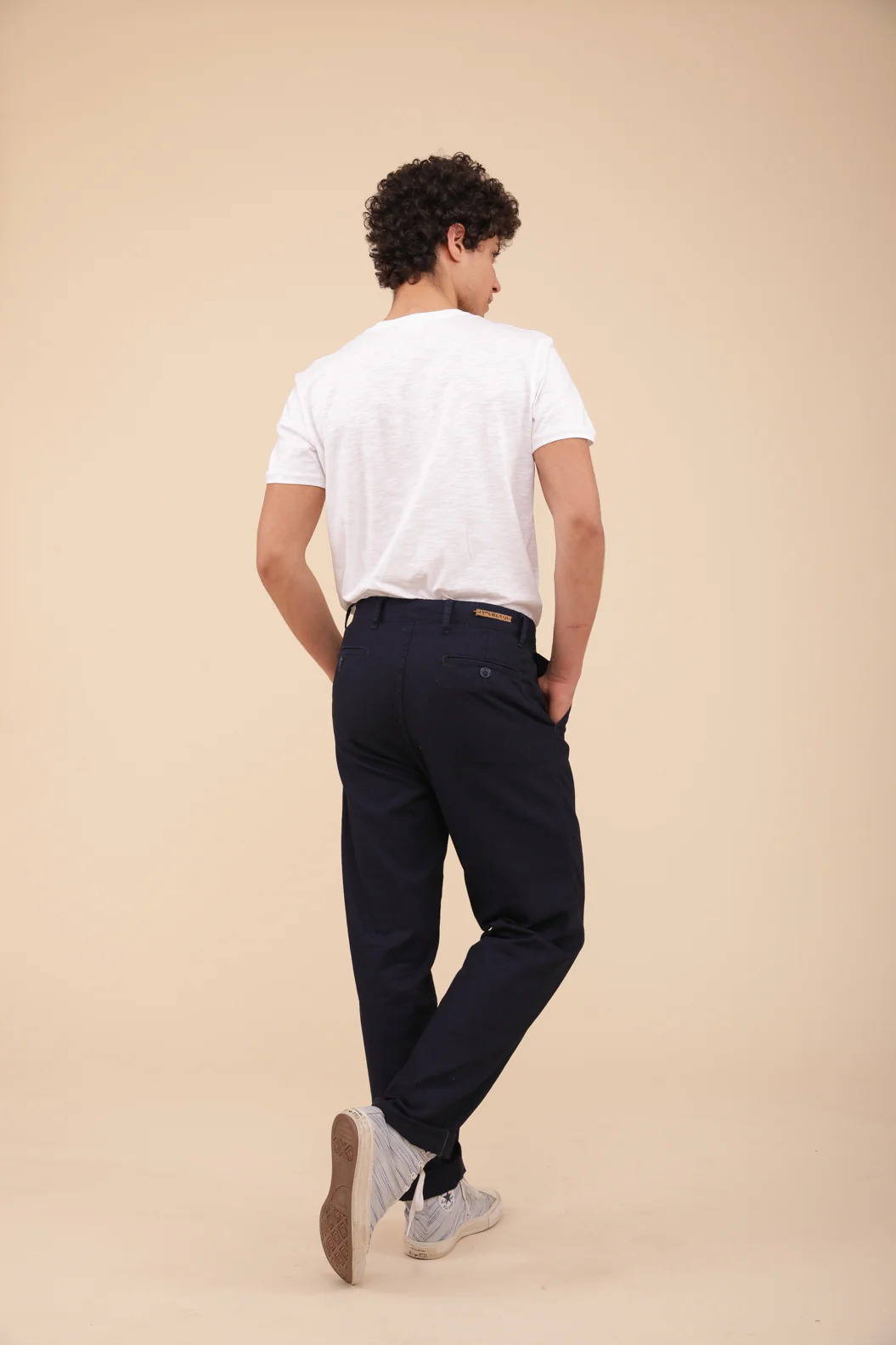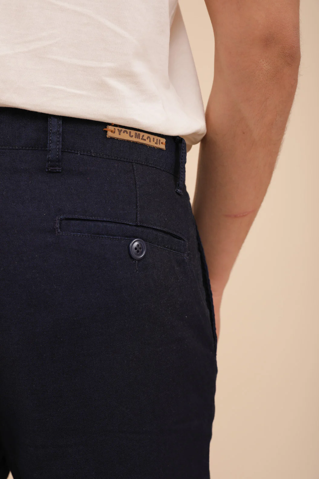 Modèle ‘Dengri’, dans une très belle toile de coton bleu nuit, résistante et souple.