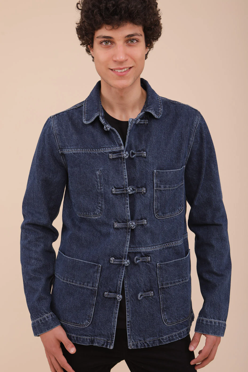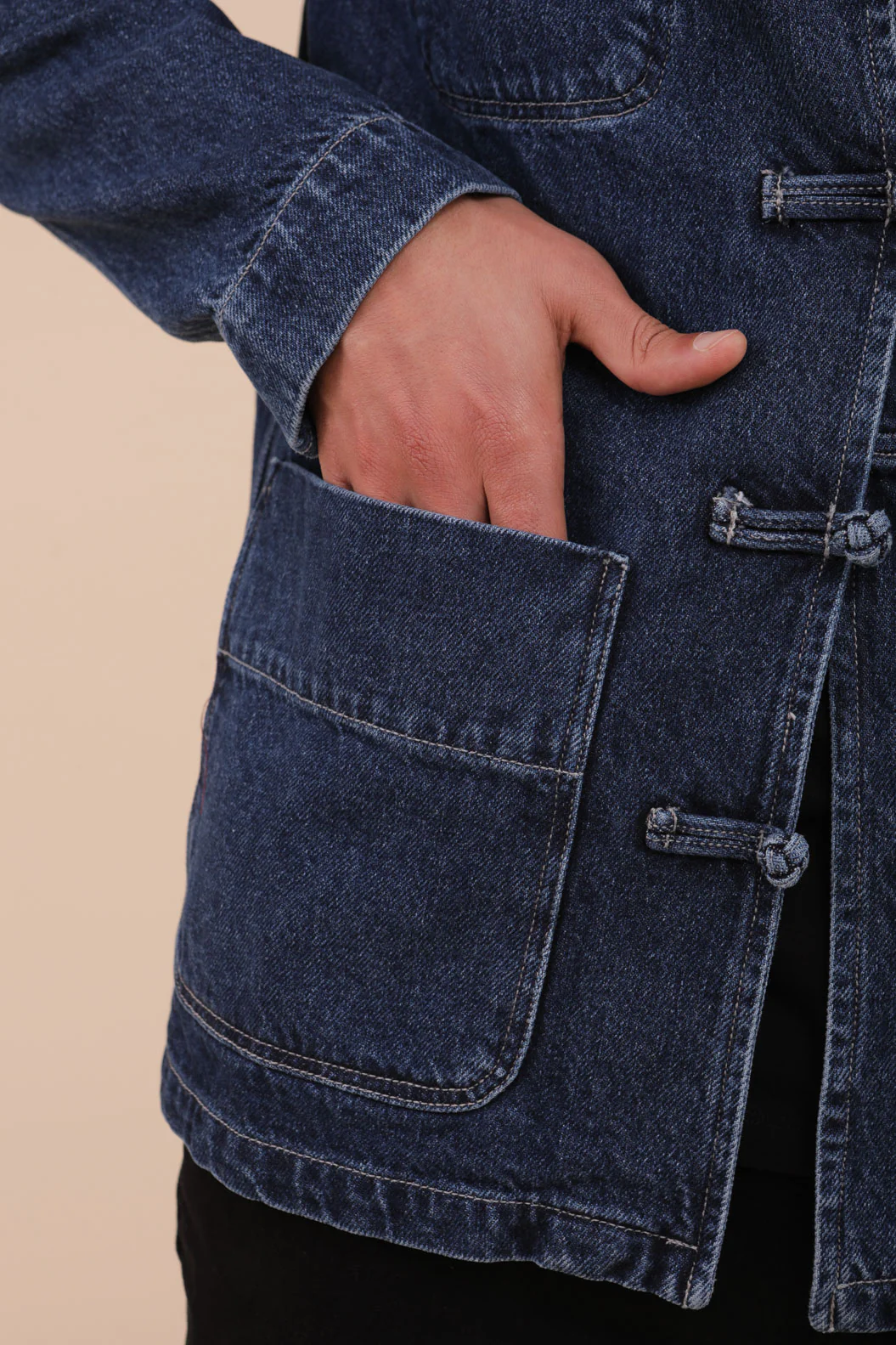 – avec tous les attributs de la veste d’origine : boutons chinois, petites poches plaquées et manches à revers.