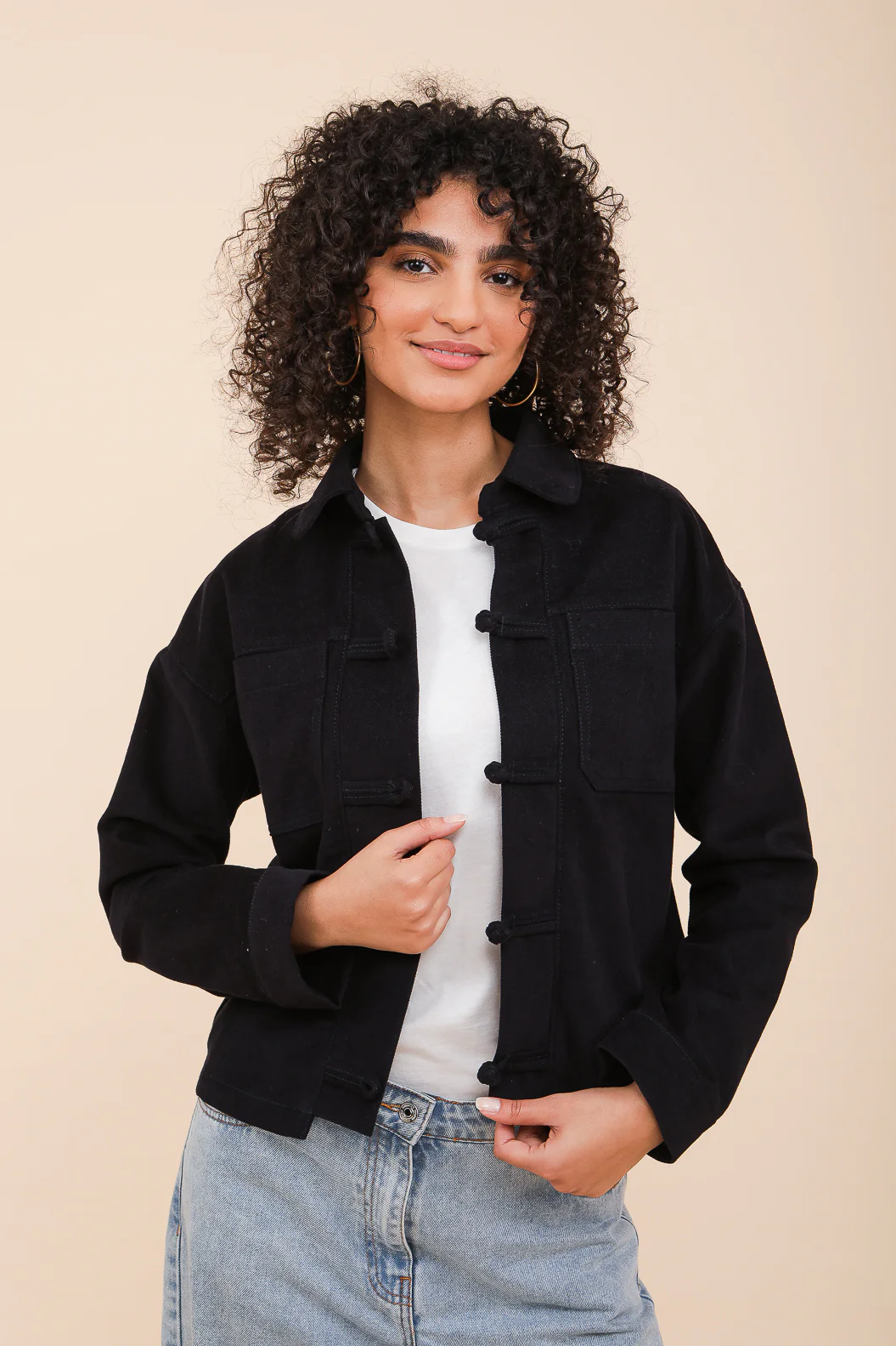 Veste ‘Dengri’, l’iconique pièce du vestiaire. Inspirée du mythique bleu de travail sud-méditerranéen, on vous la propose dans une coupe féminine inédite et exclusive.– en toile en sergé 100% coton, au toucher velours– matière solide et élégante, offrant une agréable souplesse– coupe un peu loose, légèrement courte– épaules tombantes, 2 grandes poches poitrine plaquées– boutons […]
