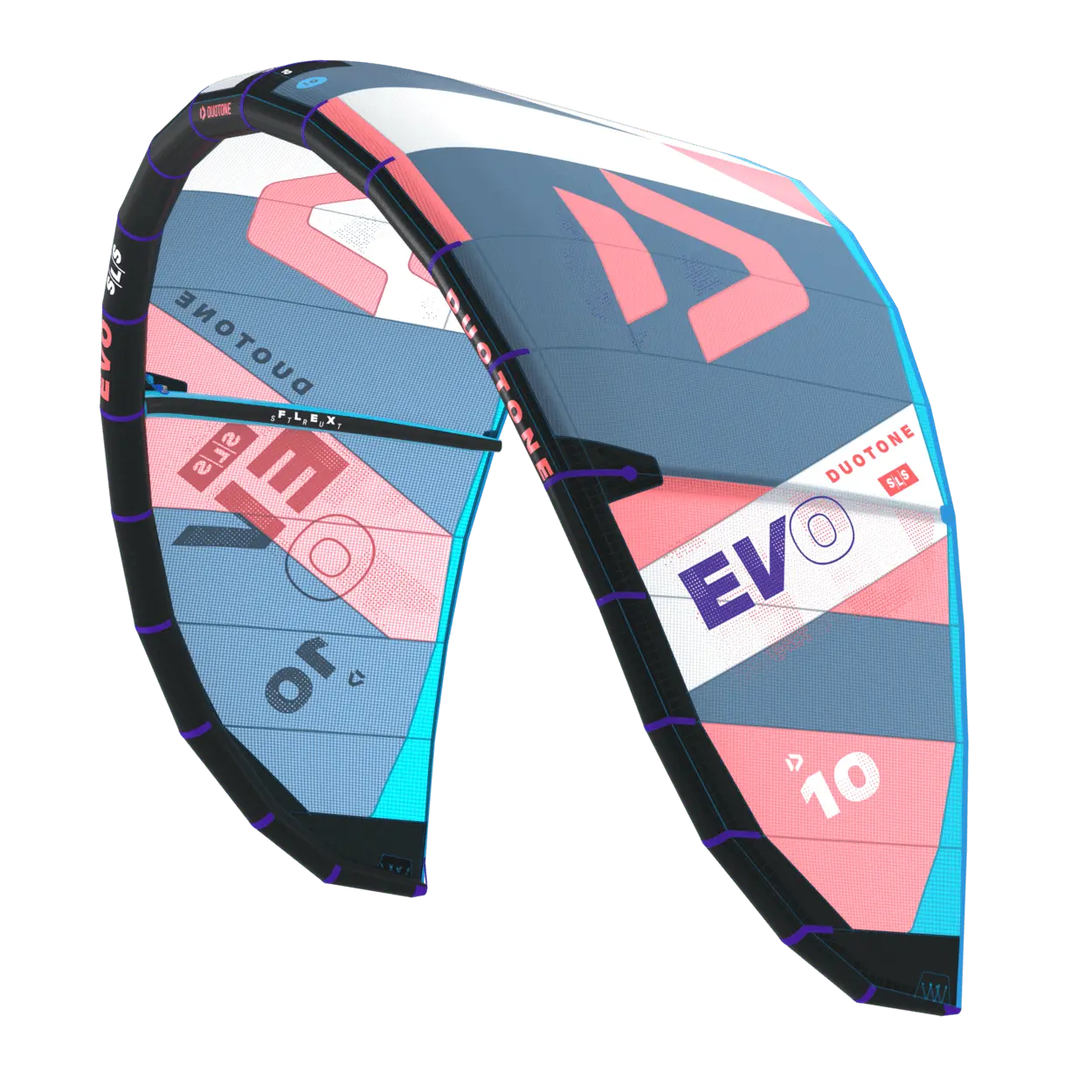 Nouveauté pour 2024, l’Evo SLS offre des performances accrues grâce au nouveau design de son bord d’attaque, un design plus fin et développé à partir de Penta TX. Cette nouvelle construction permet de réduire le poids tout en conservant la rigidité du cadre et en augmentant les performances de l’aile jusque’à la planche. Une fois encore, l’Evo SLS est l’aile de choix si tu souhaites une polyvalence ultime, mais cette année, nous t’emmenons encore plus loin dans le monde du kite. Si tu souhaites des performances plus dynamiques dans toute une gamme de disciplines, l’Evo SLS est l’aile qu’il te faut dans ton quiver. Pour le big air par grands vents, le freeride entre amis, déchirer quelques vagues ou réaliser quelques tricks en freestyle déhooké, l’Evo SLS peut tout faire avec un niveau de performance grisant à chaque virage. Son pilotage dynamique et réactif est parfait pour réaliser des loops contrôlés, il inspire confiance, quel que soit ton niveau. Celui-ci te permet de t’envoler plus facilement et plus longtemps, avec moins d’efforts et d’énergie. C’est comme si l’aile disposait d’un mode qui facilite tout, te permettant notamment d’augmenter de quelques mètres tes scores Woo. À toi le gros pop, les décollages plus en douceur et le hangtime prolongé. L’Evo SLS offre un pilotage incroyablement dynamique auquel contribuent les Flex Struts, pour des virages plus rapides. L’absence de poulies au niveau du système de bridage permet de réduire les contraintes d’entretien et d’améliorer le contrôle, notamment lors des loops. Tout au long de l’exécution de chaque figure et à chaque étape, tu vas bénéficier d’un contrôle total avec cette aile qui te donne le sentiment d’être le prolongement de ton corps. L’Evo SLS est le choixincontournable des riders en quête d’une aile polyvalente de haute performance qui offre un pilotage exceptionnel, quel que soit ton style de prédilection. Que ce soit pour le big air, les sessions de freeride, les figures de freestyle en déhooké ou surfer les vagues, la nouvelle Evo SLS facilite le kite et le rend encore plus ludique, quel que soit ton niveau !
