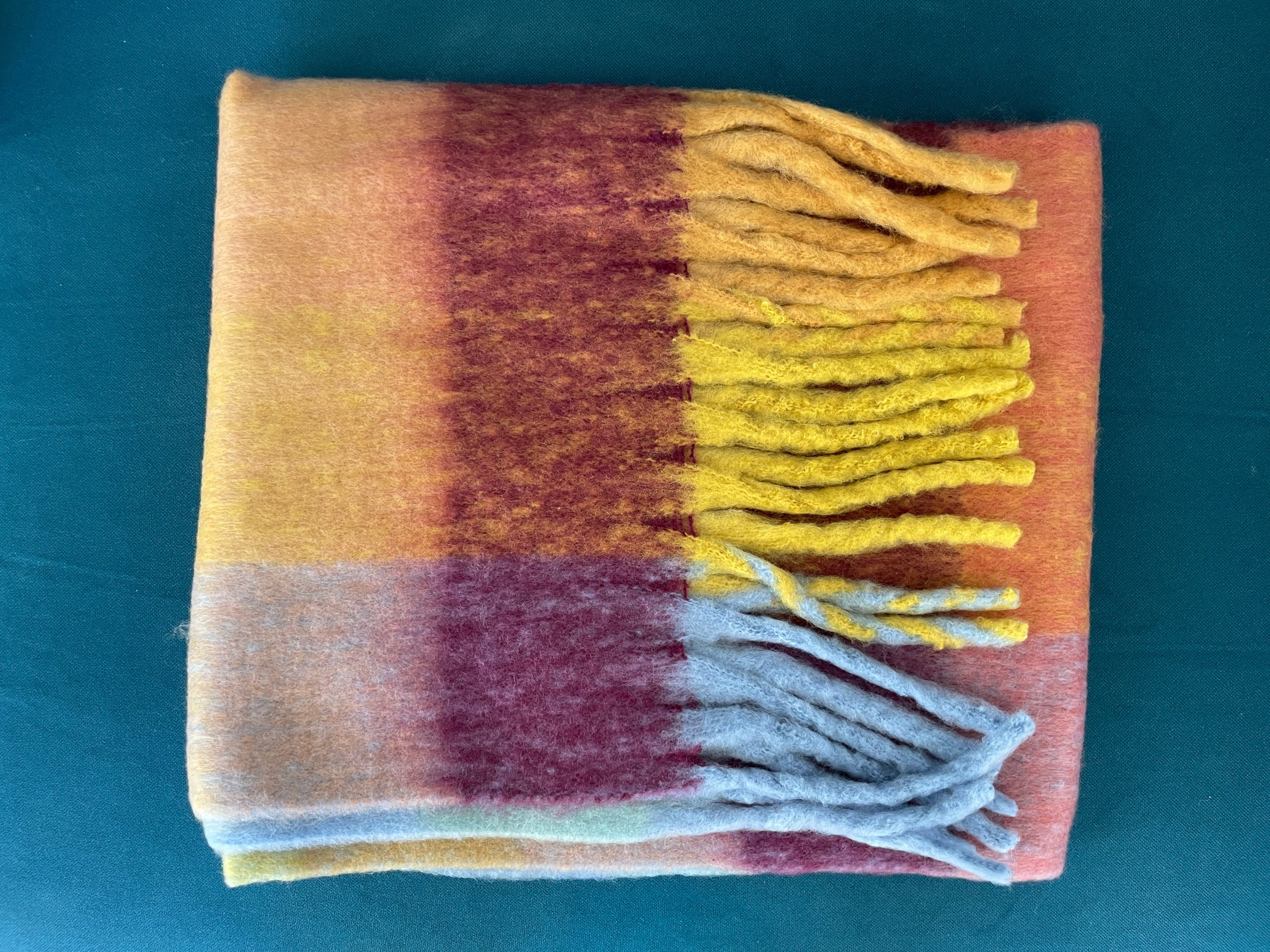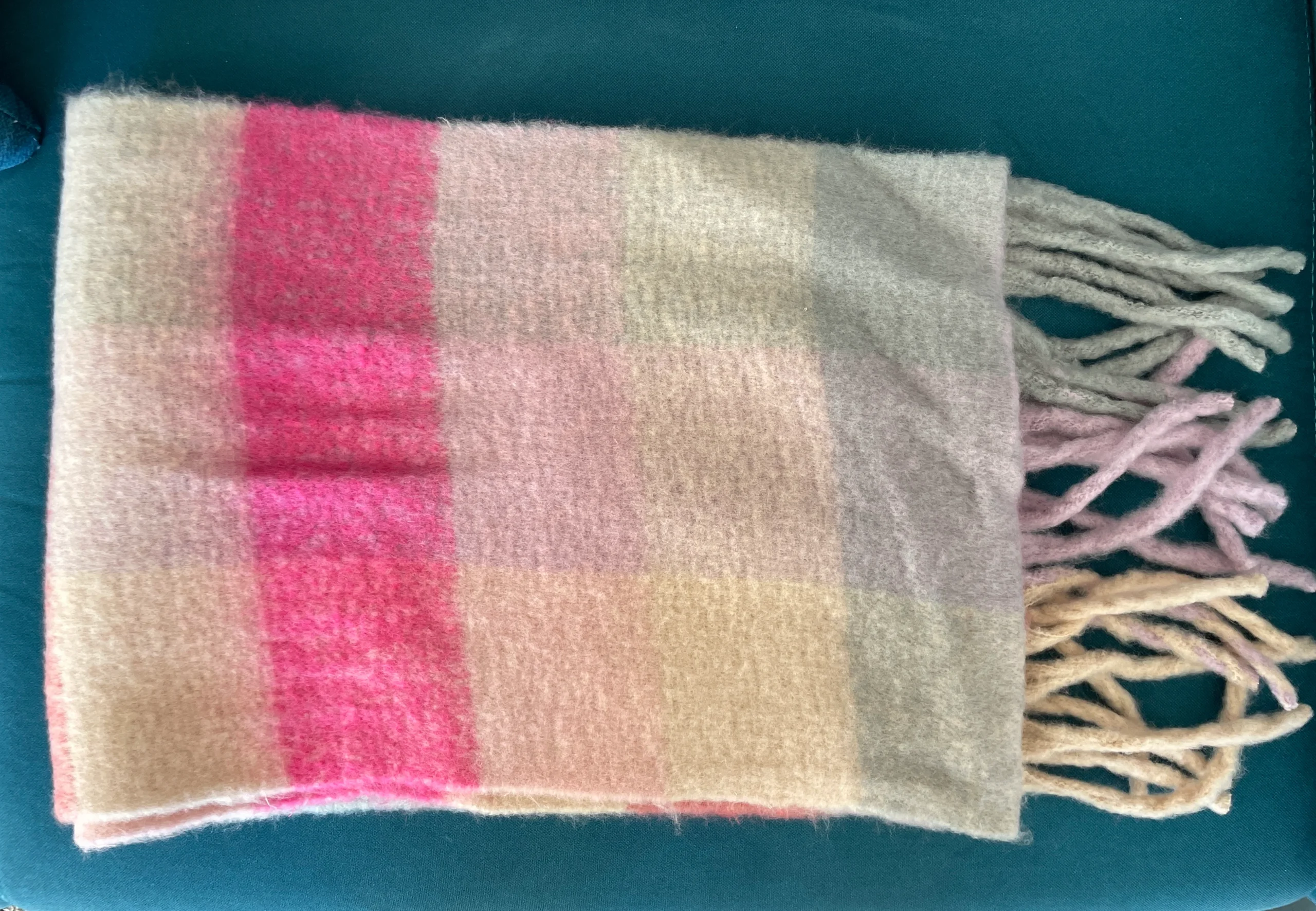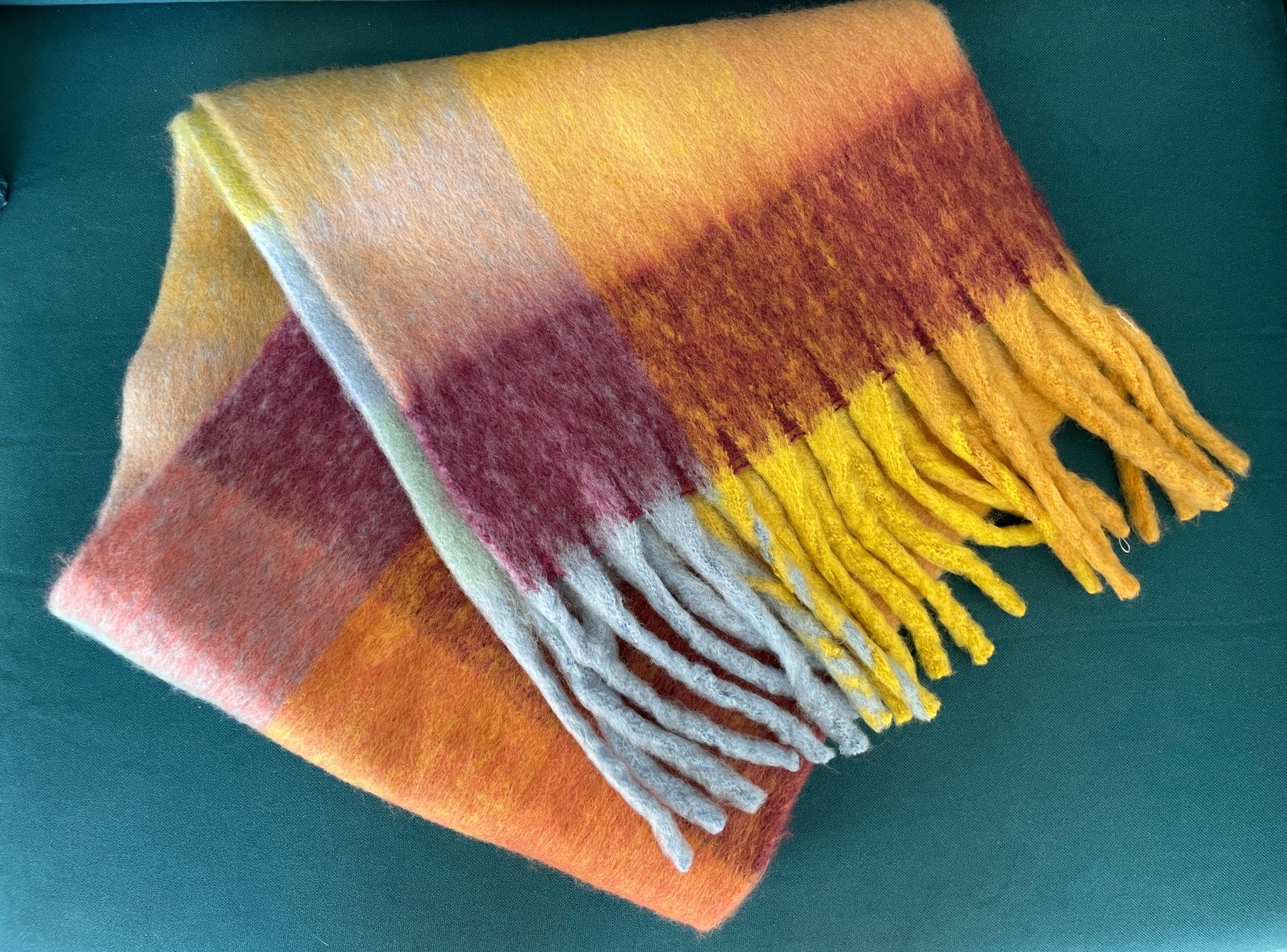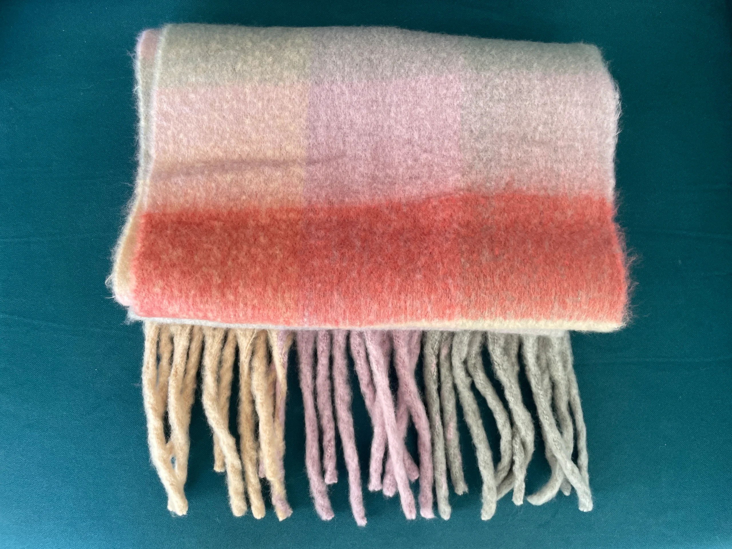 De magnifiques écharpes en cashmere-laine à carreaux et à franges.