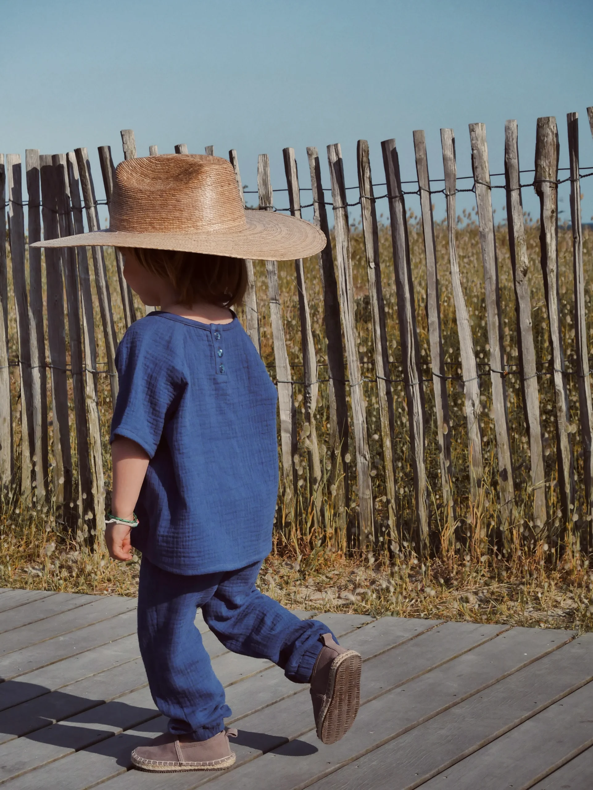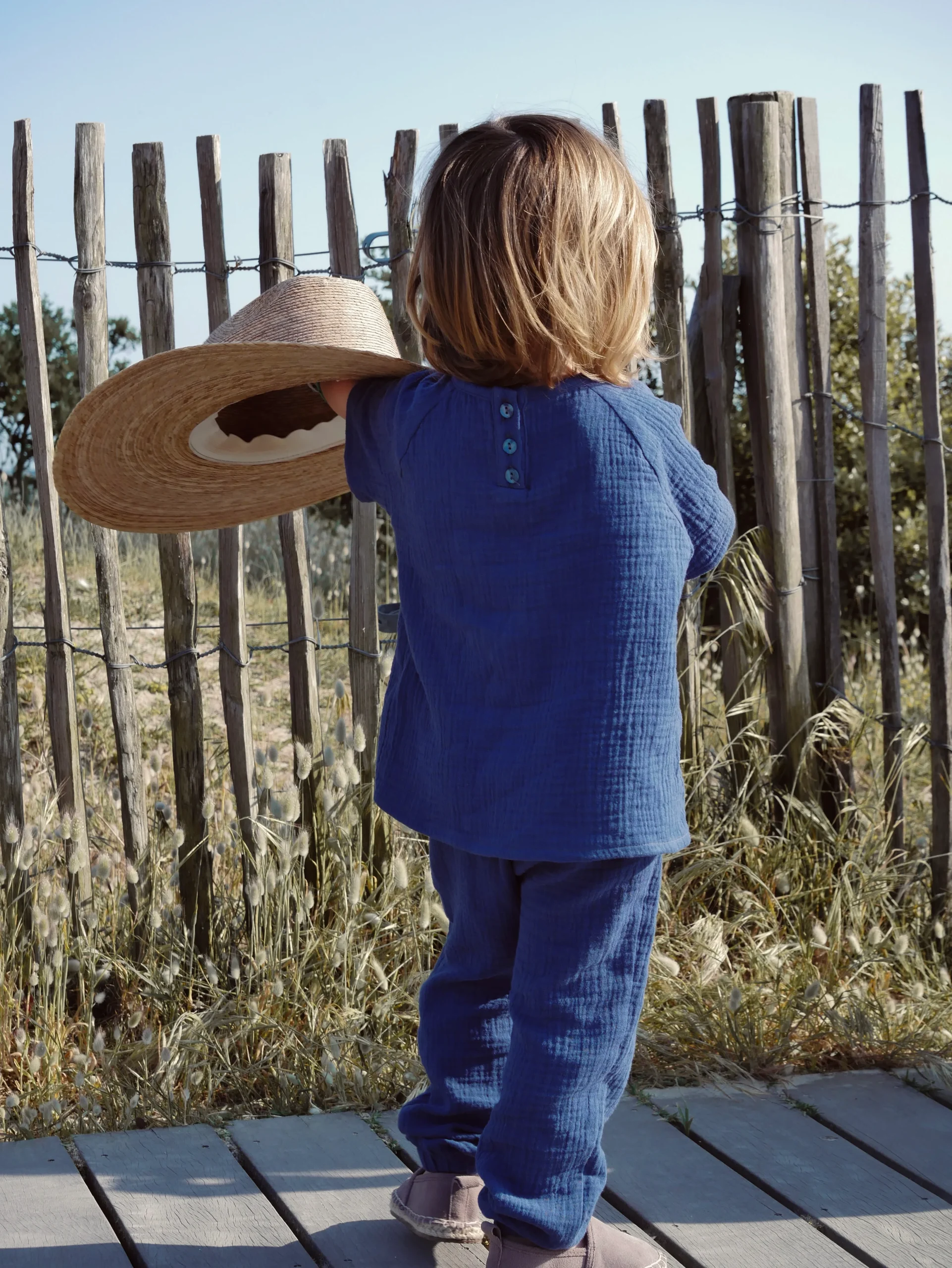 Cet ensemble en gaze de coton a été fabriqué en France, dans le respect du savoir-faire traditionnel.