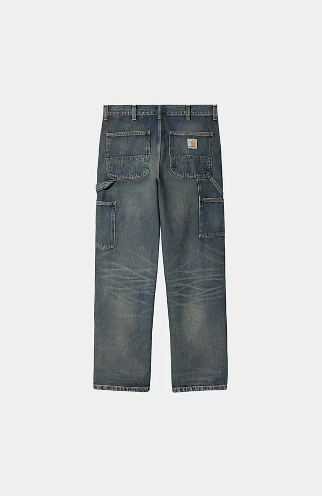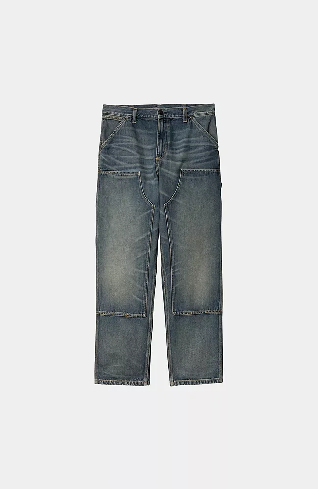 Jean Carhartt Wip DOUBLE KNEE PANT Blue Worn Used Wash