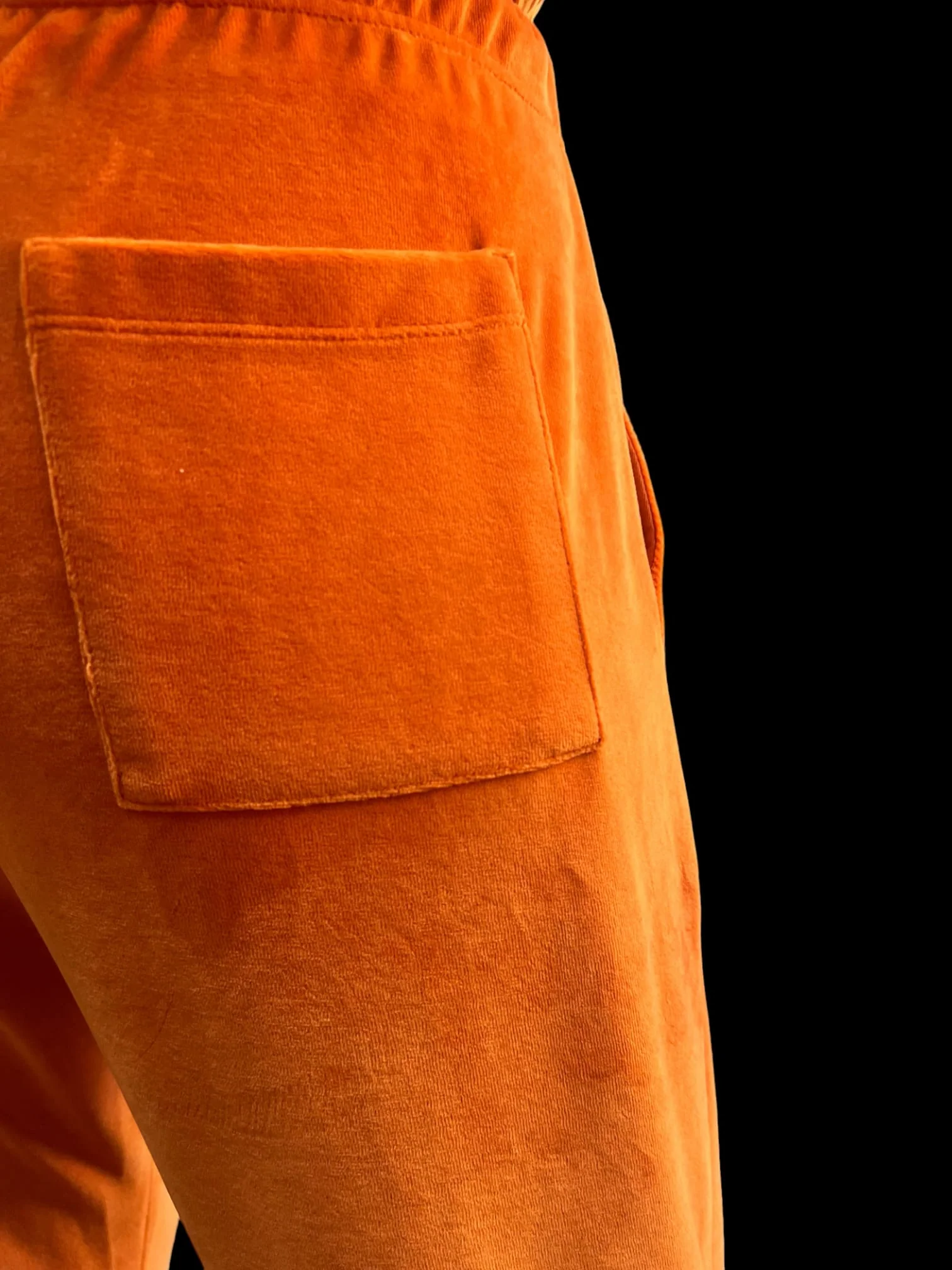 Magnifique jogging en velours Hod Paris qu’on a sélectionné dans sa version la plus incroyable… couleur tangerine.