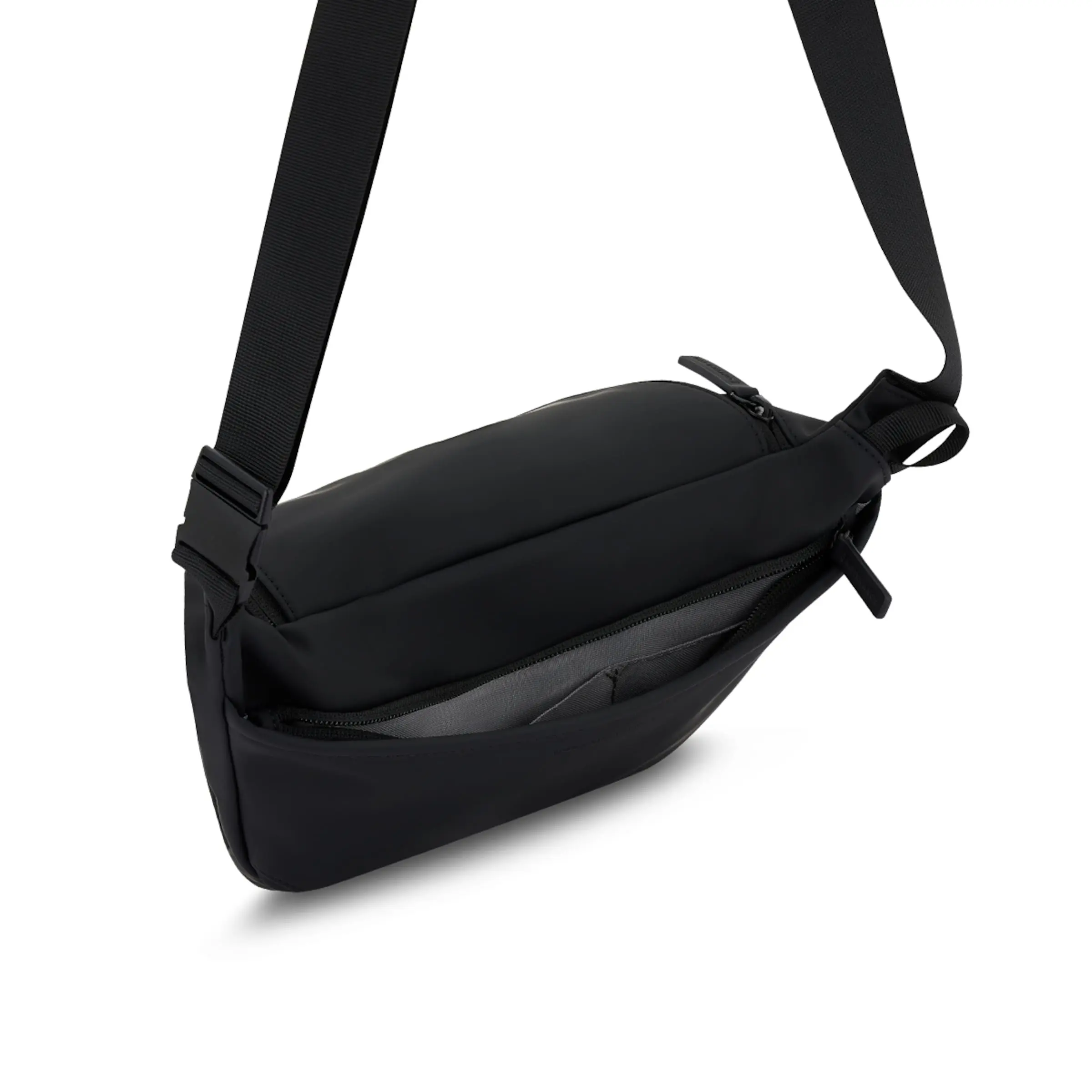Sa sangle réglable s’ajuste à toutes les morphologies et situations : portée en bandoulière pour les déplacements urbains, ajustée courte pour le sport, ou positionnée devant pour les voyages sécurisés.