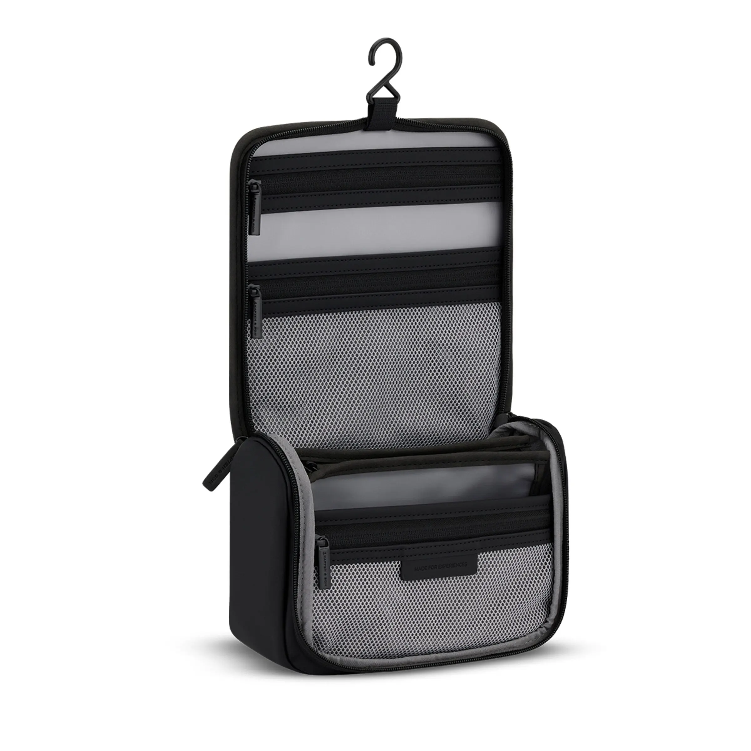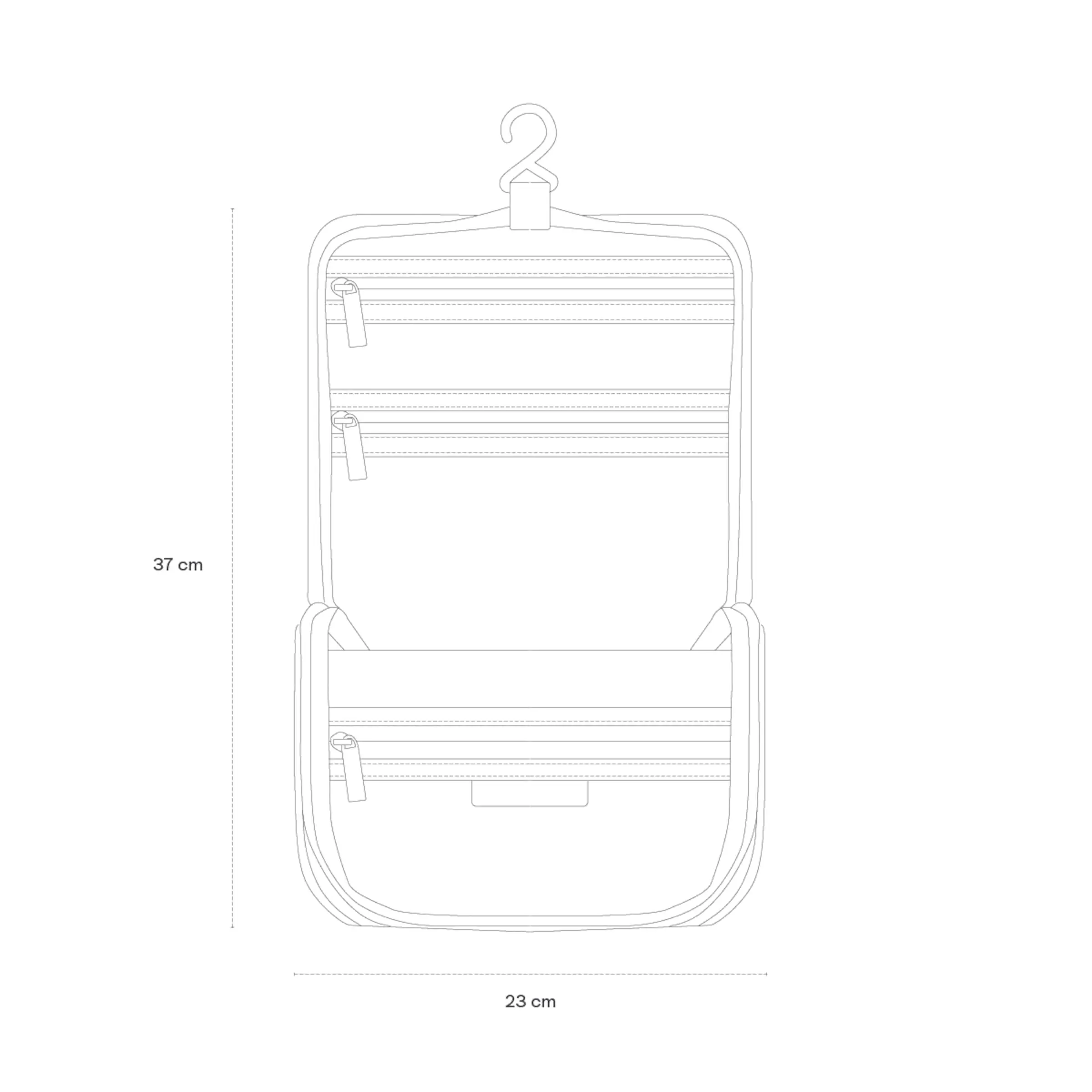 Elle s’ouvre entièrement à plat pour une vue d’ensemble optimale et peut être suspendue grâce à son crochet intégré, pratique dans les salles de bain exiguës. Elle dispose de nombreuses poches fonctionnelles pour organiser efficacement tous vos produits de toilette.