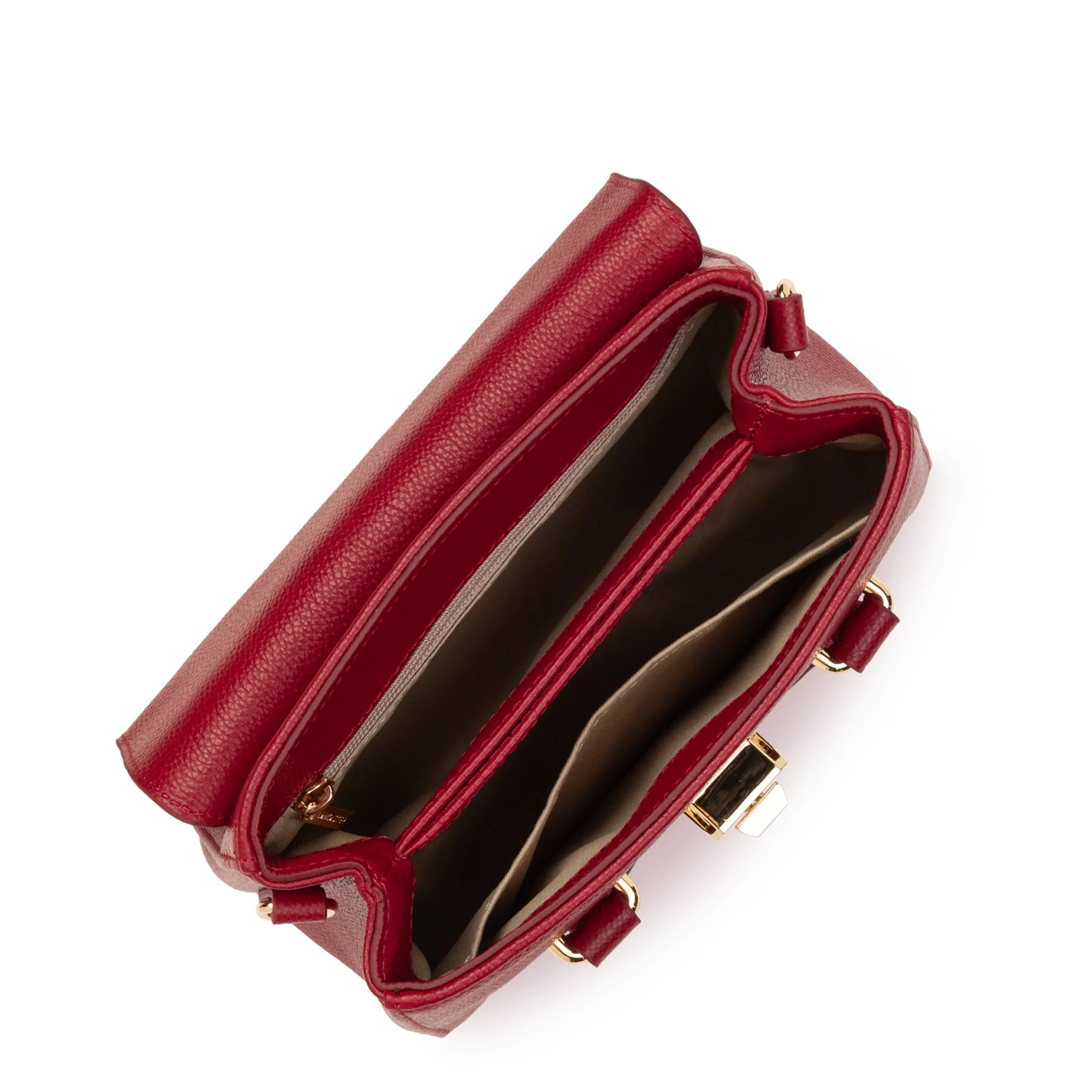 Le fermoir métallique apporte une touche vintage sophistiquée tout en garantissant une fermeture sécurisée. Sa silhouette structurée à rabat offre un accès pratique aux essentiels quotidiens. Le cuir carmin développe une patine naturelle qui personnalise chaque pièce avec le temps.