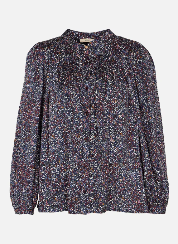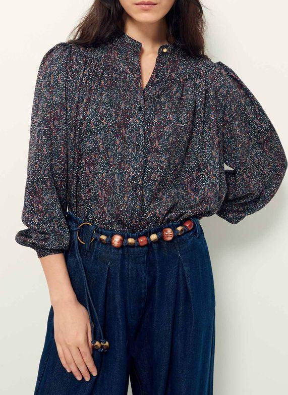 Blouse froncée et manches ballon en satin fluide de viscose.