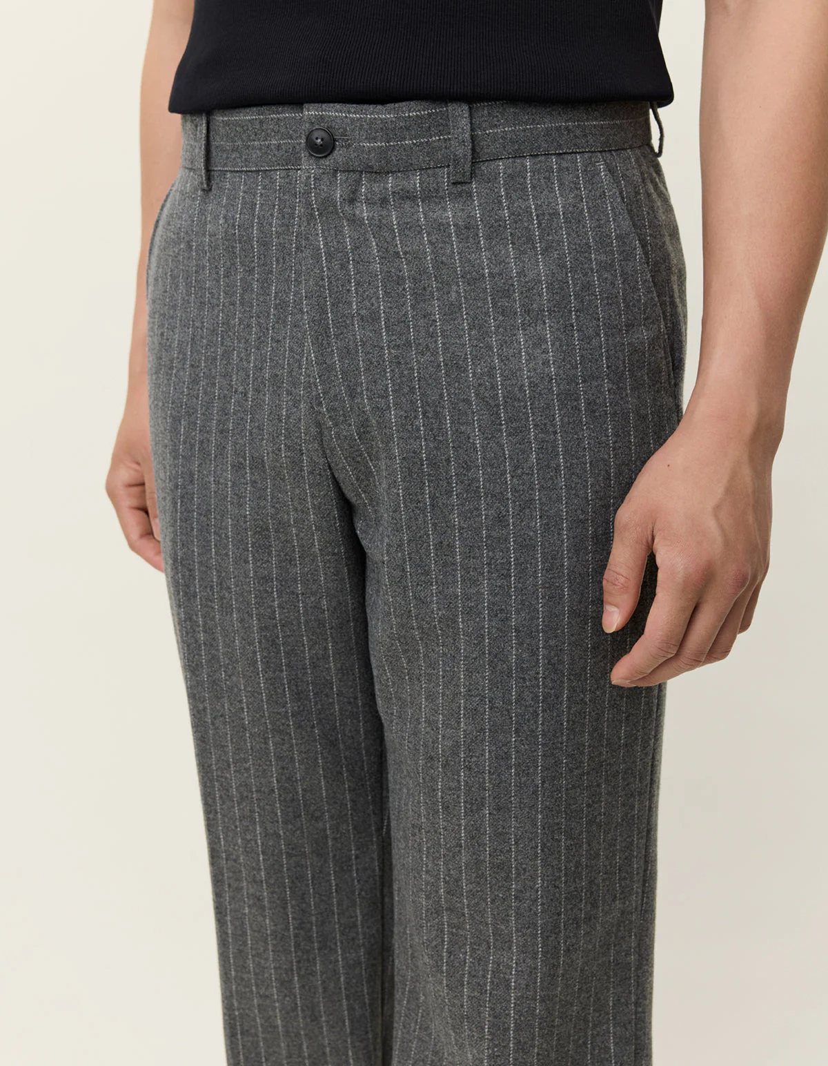 Une coupe décontractée avec une texture discrète. Faisant partie de notre série Como, ce pantalon est taillé dans un mélange de laine moulinée à fines rayures, avec une jambe ample et large pour une liberté de mouvement optimale.