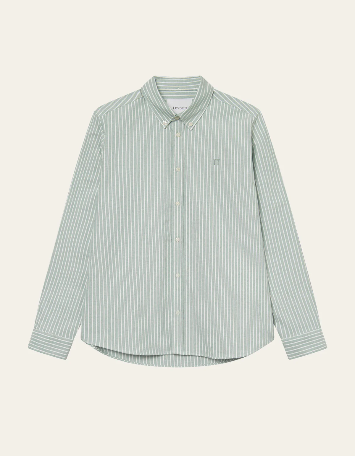 Les Deux Konrad Striped Oxford Shirt Juniper Green
