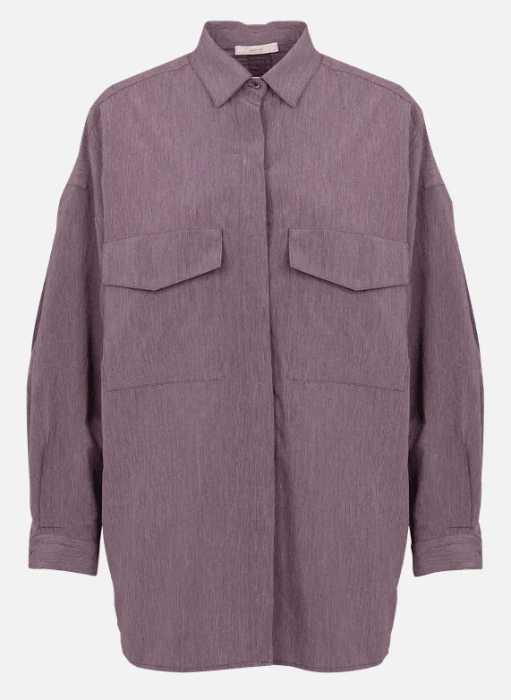 Chemise ample boutonnée sur les côtés et poches plaquées en popeline fluide fil à fil à micro-rayures, tissée en Italie.