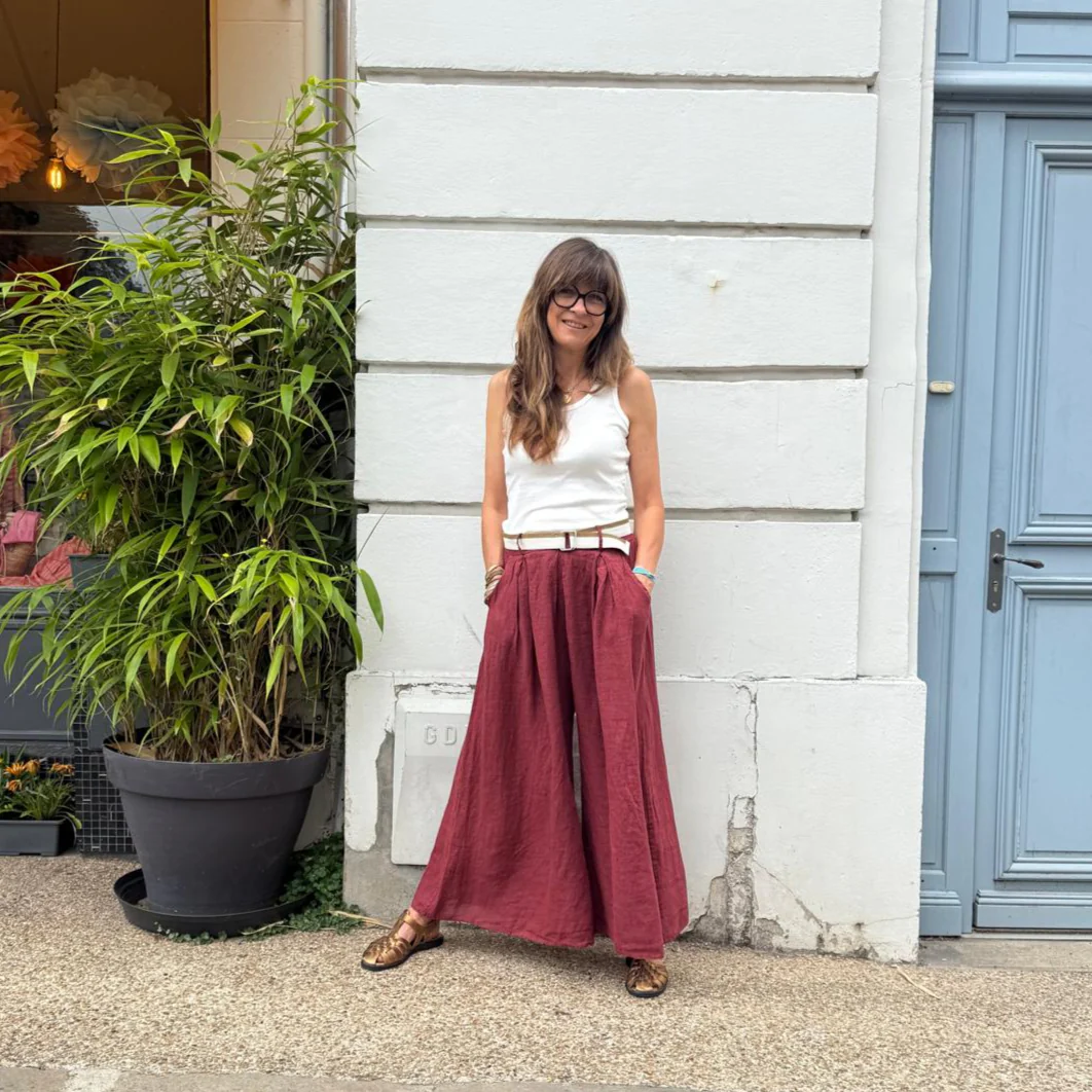 Craquez pour notre pantalon en lin 100% naturel, à la fois élégant, confortable et résolument estival. Sa coupe jambes larges ultra flatteuse convient à toutes les morphologies et allonge la silhouette avec style. Léger et respirant, il est parfait pour vous accompagner tout l’été, que ce soit au bureau, en terrasse ou en vacances au soleil.
