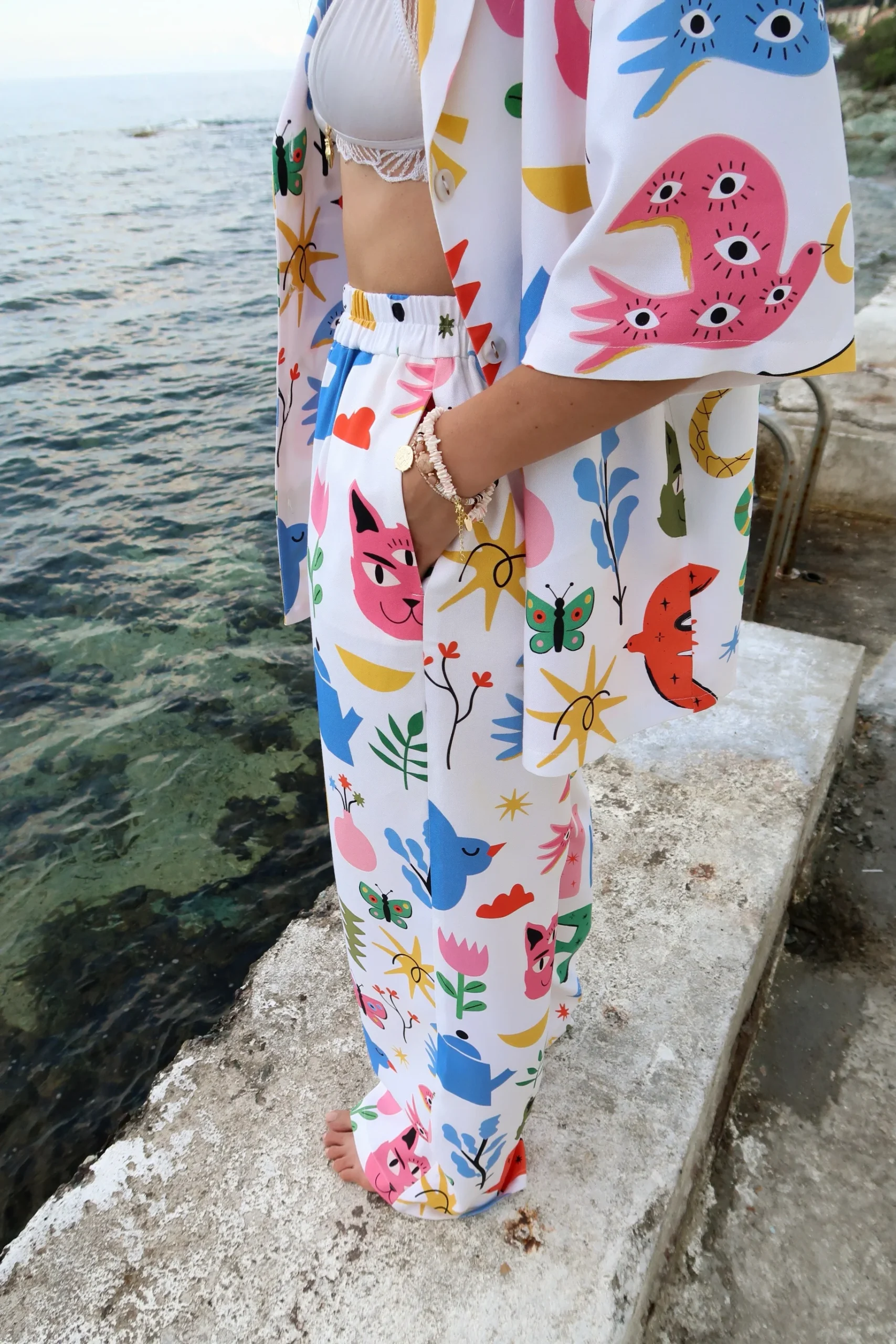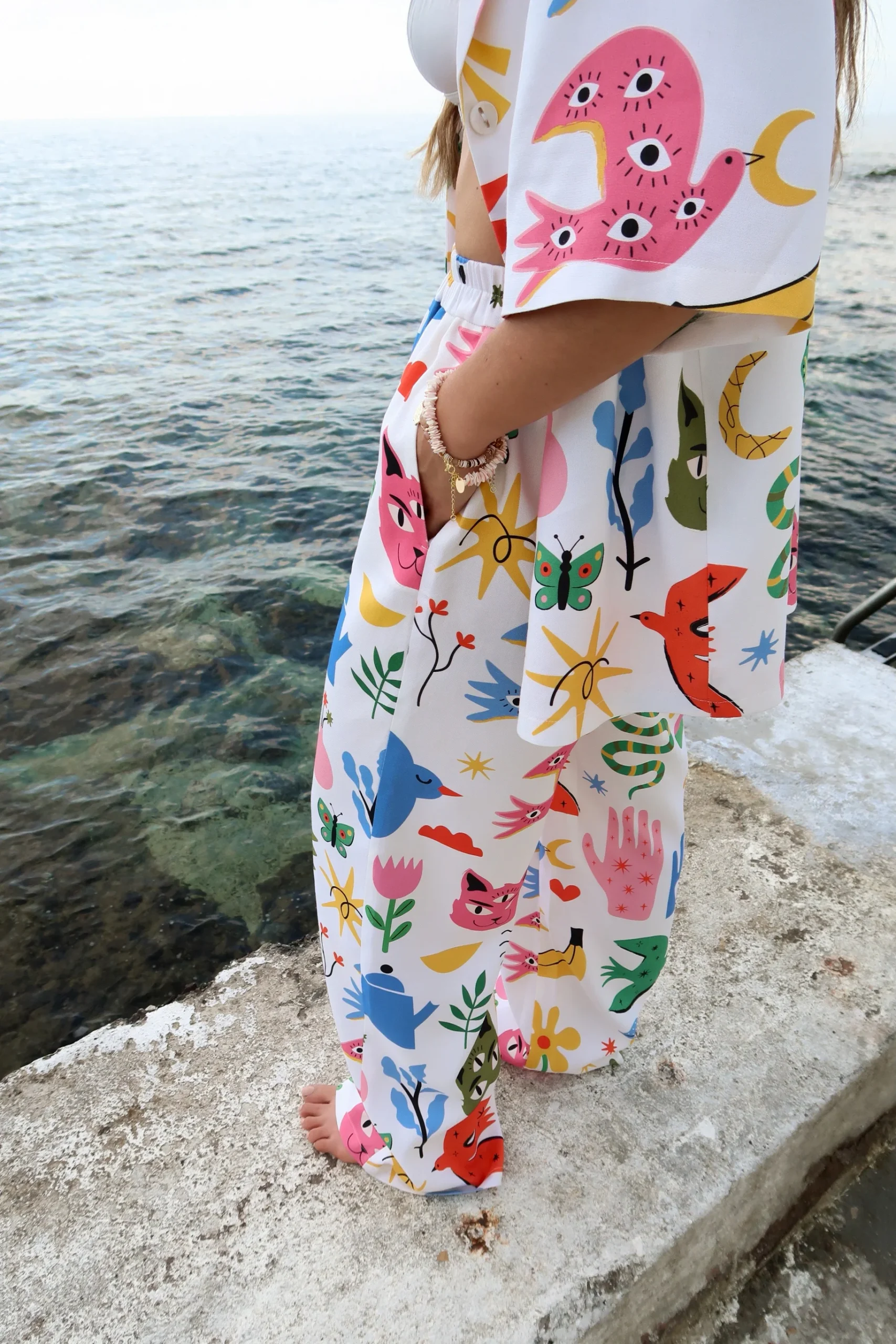 La ceinture en toile incluse apporte une touche bohème et structure la taille avec délicatesse. Ce pantalon taille unique convient du 36 au 44 grâce à sa coupe souple et fluide.
