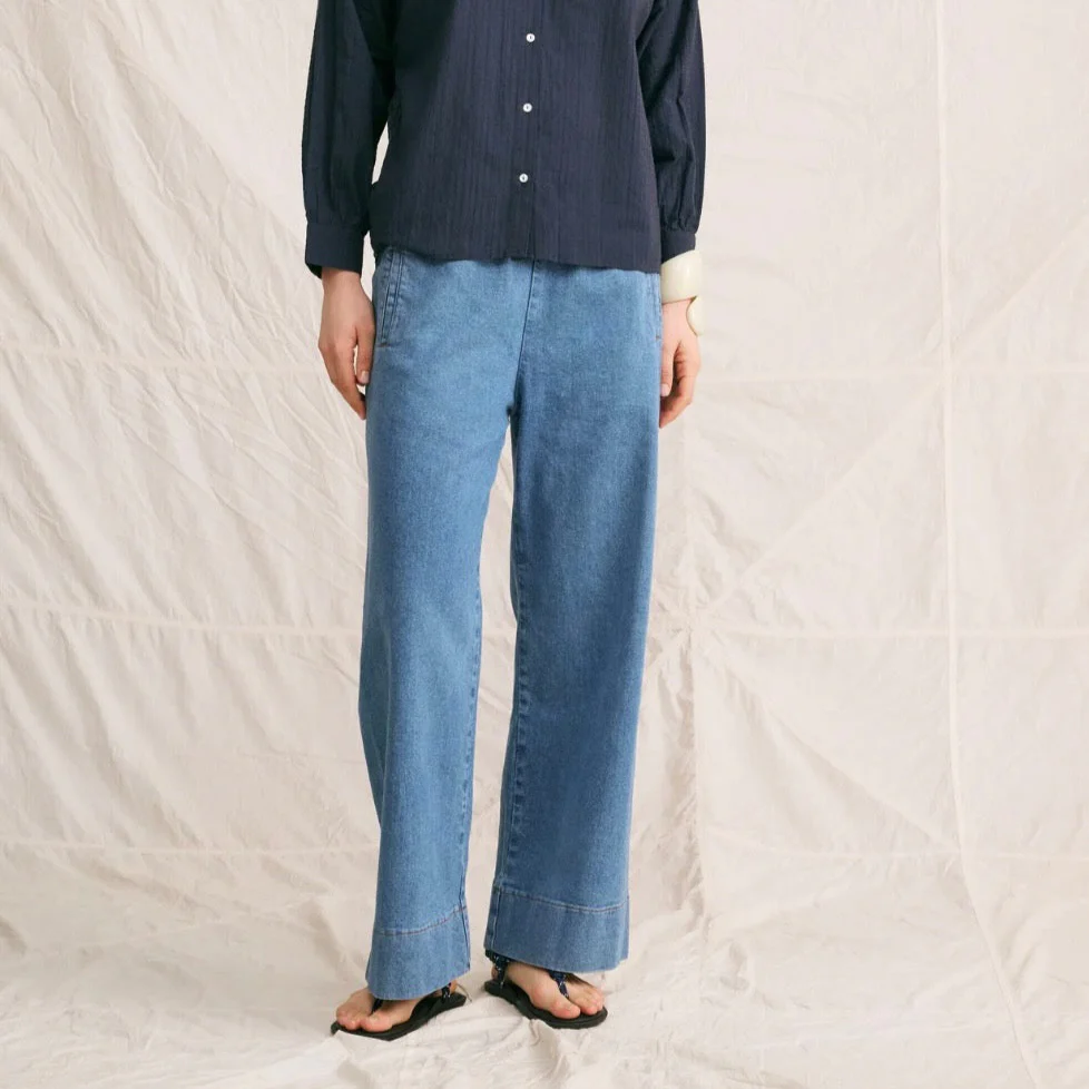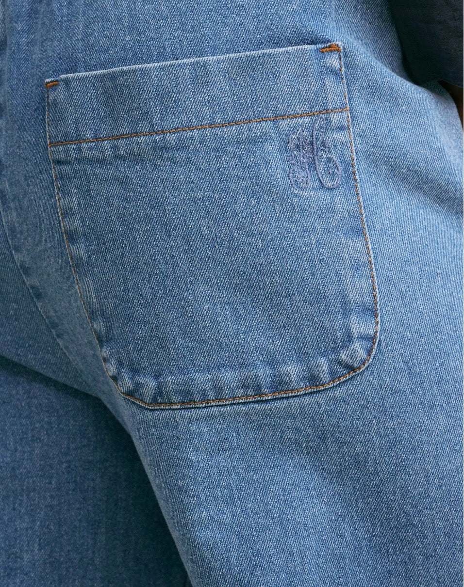 Le pantalon Jimmy, modèle iconique de la marque HOD PARIS ici dans sa version jean light. Jimmy est entièrement élastiqué à la taille, ce qui le rend très confortable. Jambe droite et large. 2 poches plaquées « à l’italienne », 1 poche plaquée à l’arrière. Prenez 1/2 taille en-dessous de votre taille habituelle : par exemple, si vous faites du 40 classique prenez le 29, si vous faites plutôt un « bon » 40 prenez le 30/