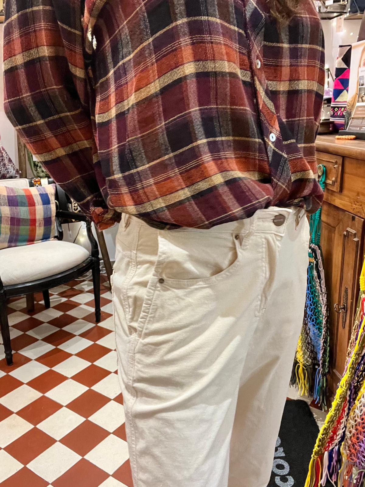 Jane Blue Paris a décliné la coupe boyfriend du Paumelle en velours fin! Léger et très très agréable à porter il est parfait pour la mi-saison ! Le confort est juste génial chez Jane Blue grâce à l’élasthane. Taille haute. Si vous êtes entre 2 tailles prenez la taille en-dessous.