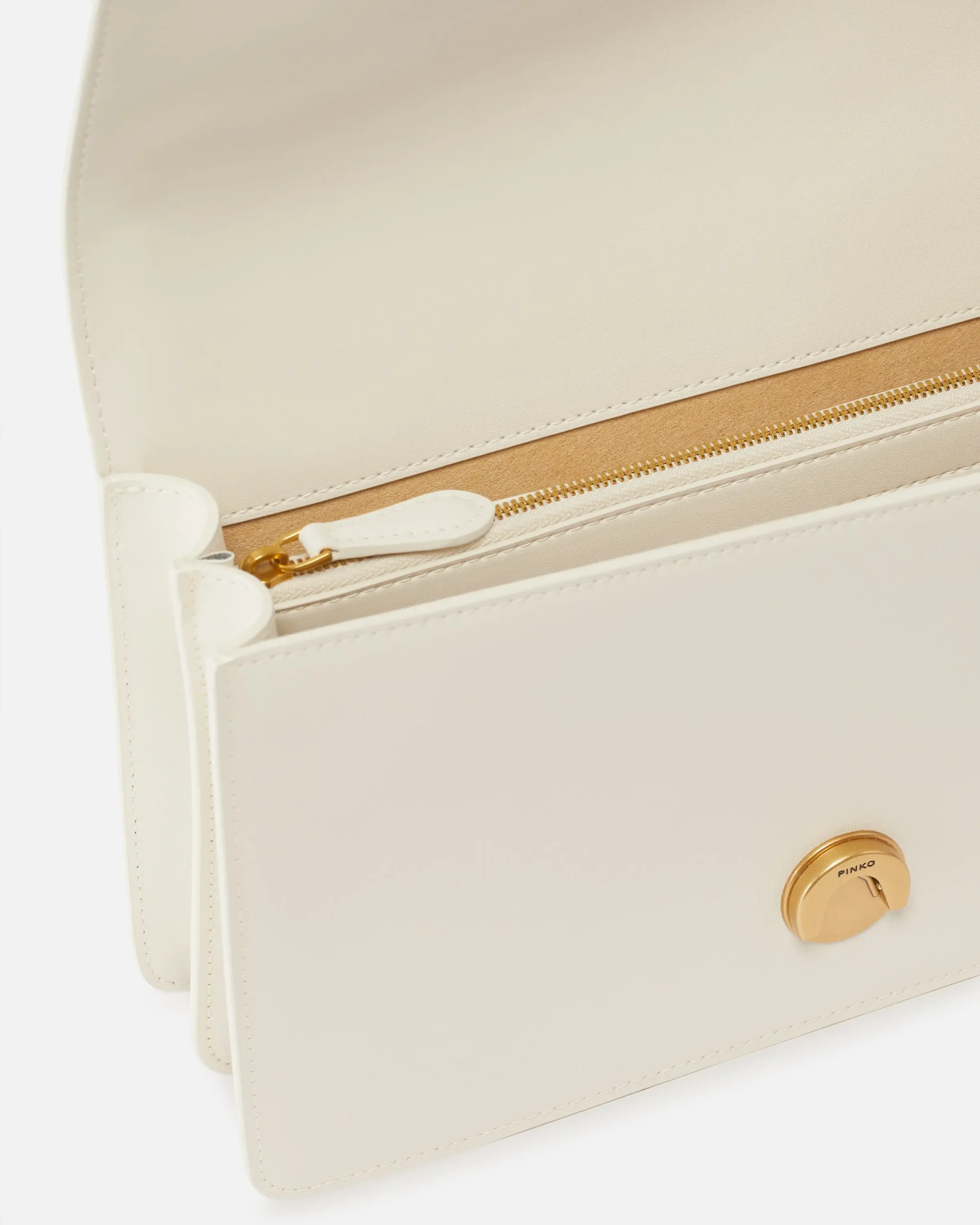 Le sac à main Love One Classic de Pinko révèle toute la sophistication de la maroquinerie italienne contemporaine. Confectionné en cuir véritable avec finitions dorées antiques, ce modèle blanc Bianco Seta transcende les tendances pour s’imposer comme un accessoire incontournable du vestiaire féminin moderne.