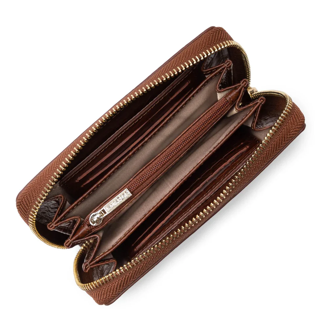 Portefeuille Lancaster zippe autour Exotic Croco 124-12 Chataigne