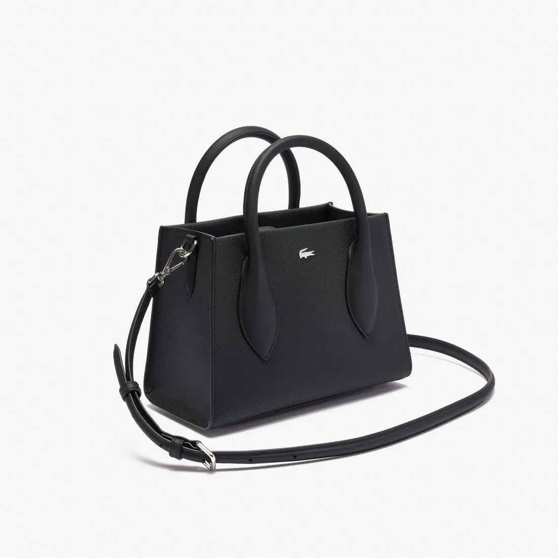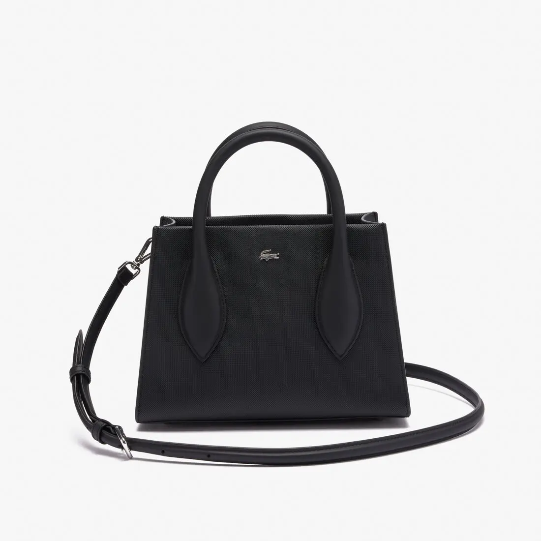 Sac à main Daily City Lacoste NF4761DZ Noir Ligne : Daly City Référence : NF4761DZ Bandoulière : ajustable et amovible Matière : Extérieur :100% Pvc Dimensions : L25 x H18 x P13 cm