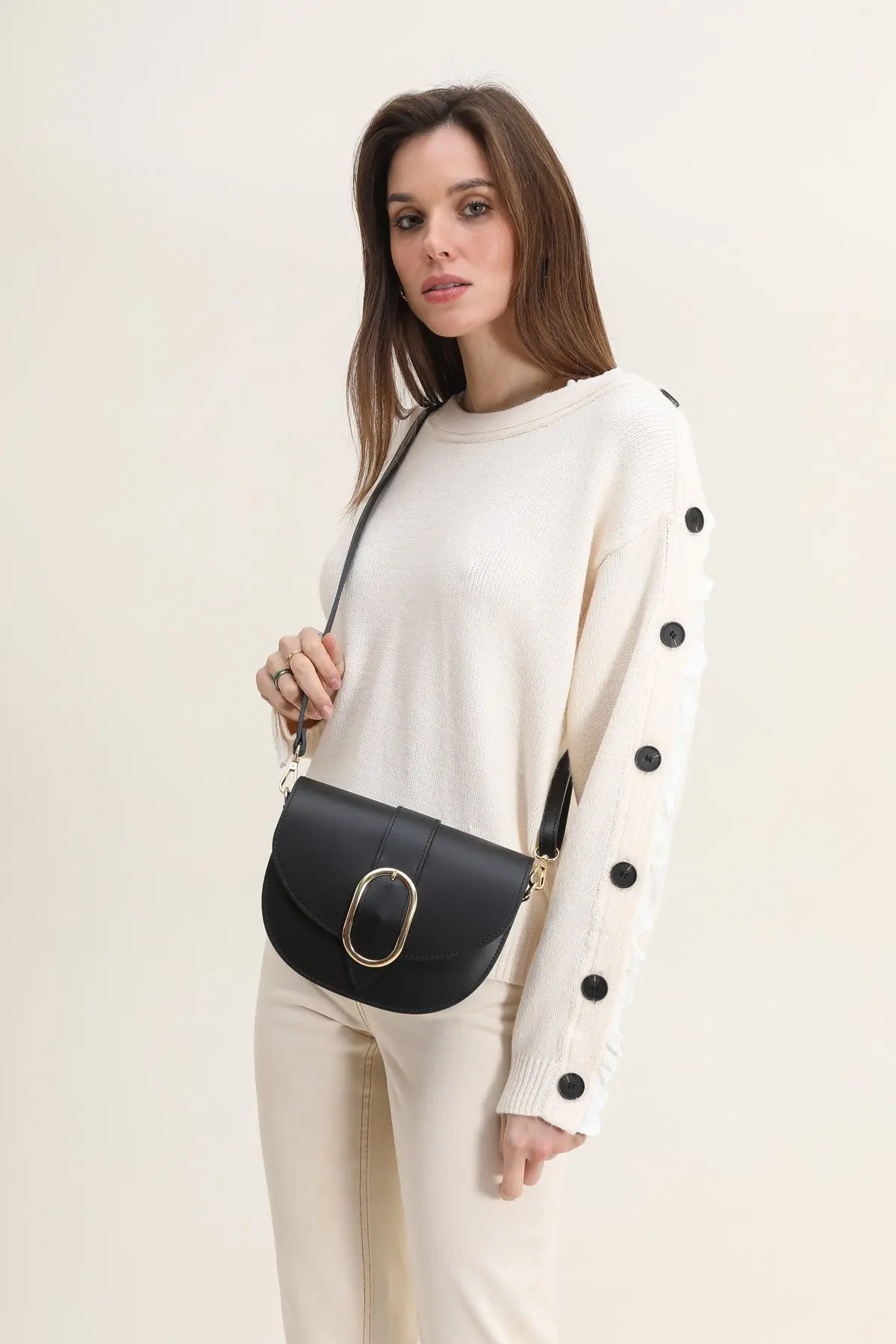 - Matière : Croûte de cuir de vachette lisse, intérieur textile