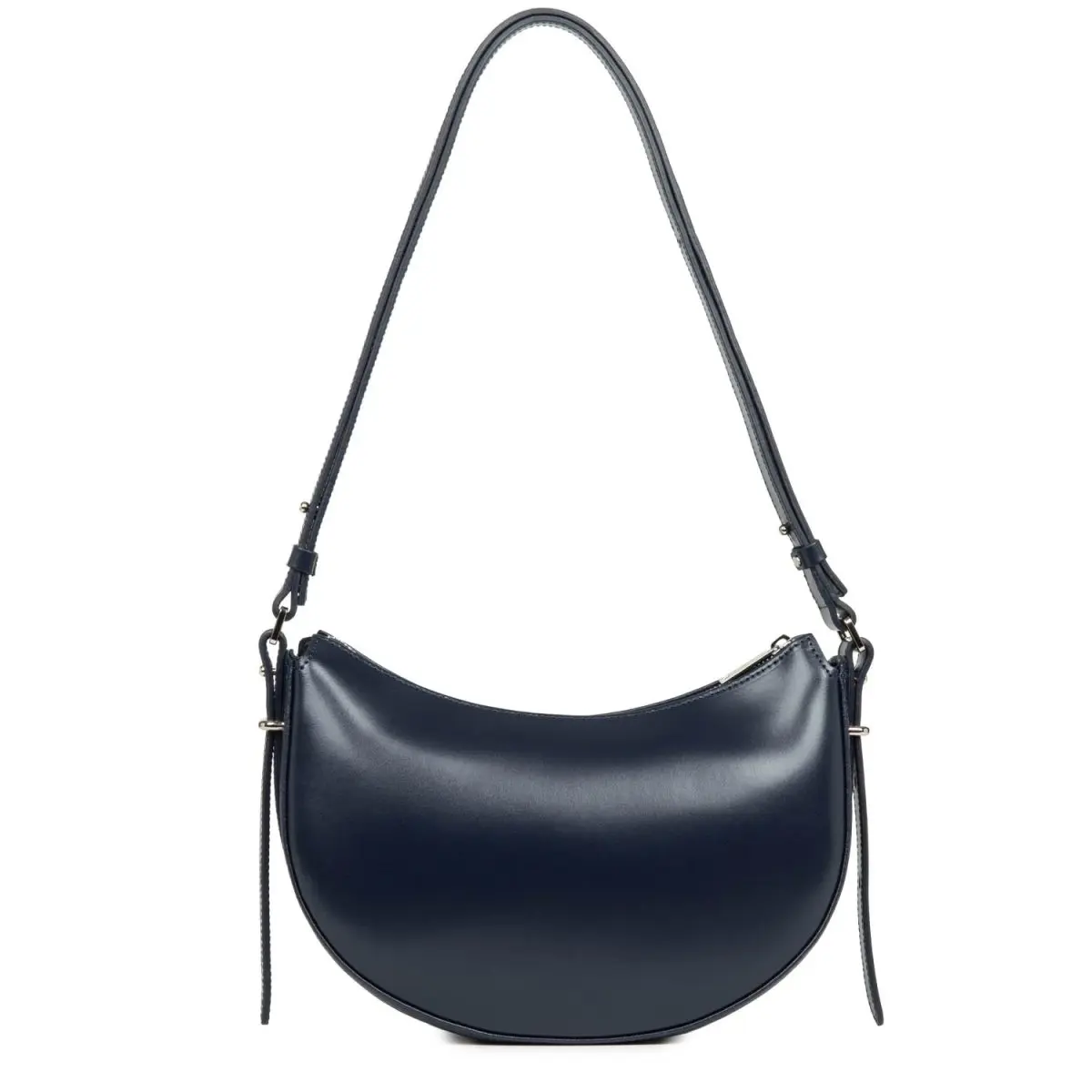 Sa forme demi lune distinctive apporte une touche contemporaine à vos tenues. La fermeture zippée garantit la sécurité de vos effets personnels tout en facilitant l’accès. Le cuir bleu foncé se marie harmonieusement avec de nombreuses tenues professionnelles et décontractées.