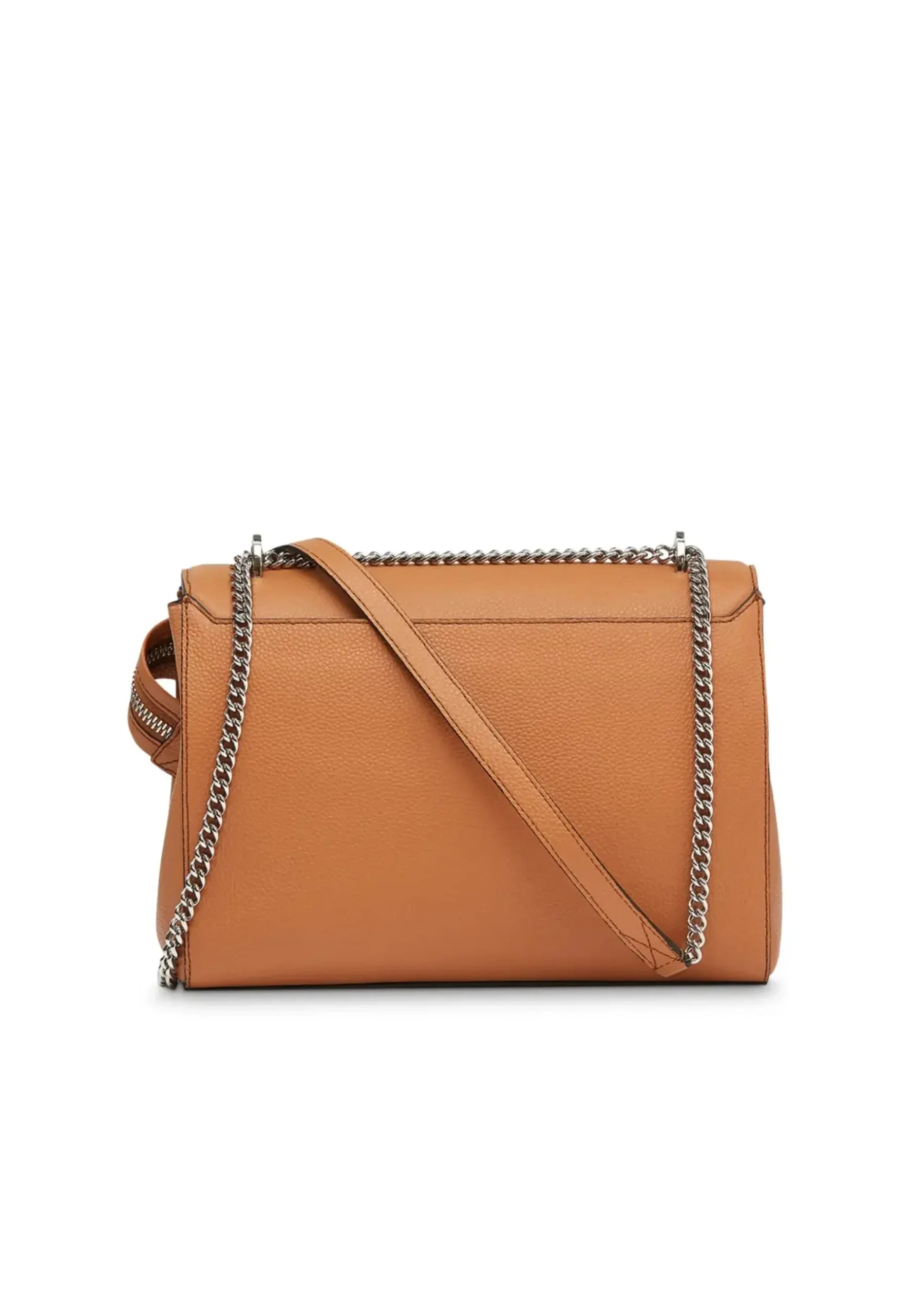 La fermeture à rabat garantit une sécurité optimale pour vos essentiels, complétée par une organisation pensée dans les moindres détails. La bandoulière chaîne et cuir coulissante offre une polyvalence remarquable, permettant un port épaule décontracté ou croisé plus structuré selon vos envies.