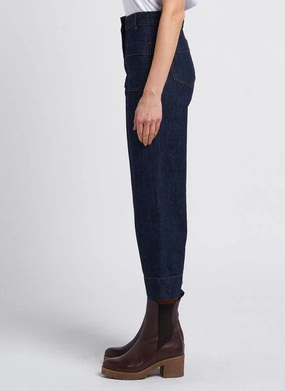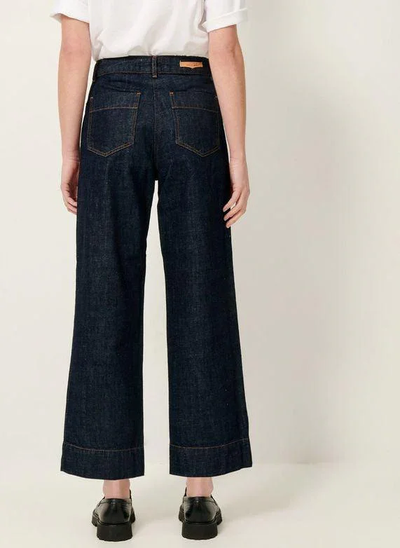 Jean 7/8ème en A esprit marin raccourci en toile de denim teinte en plongée, lavée.