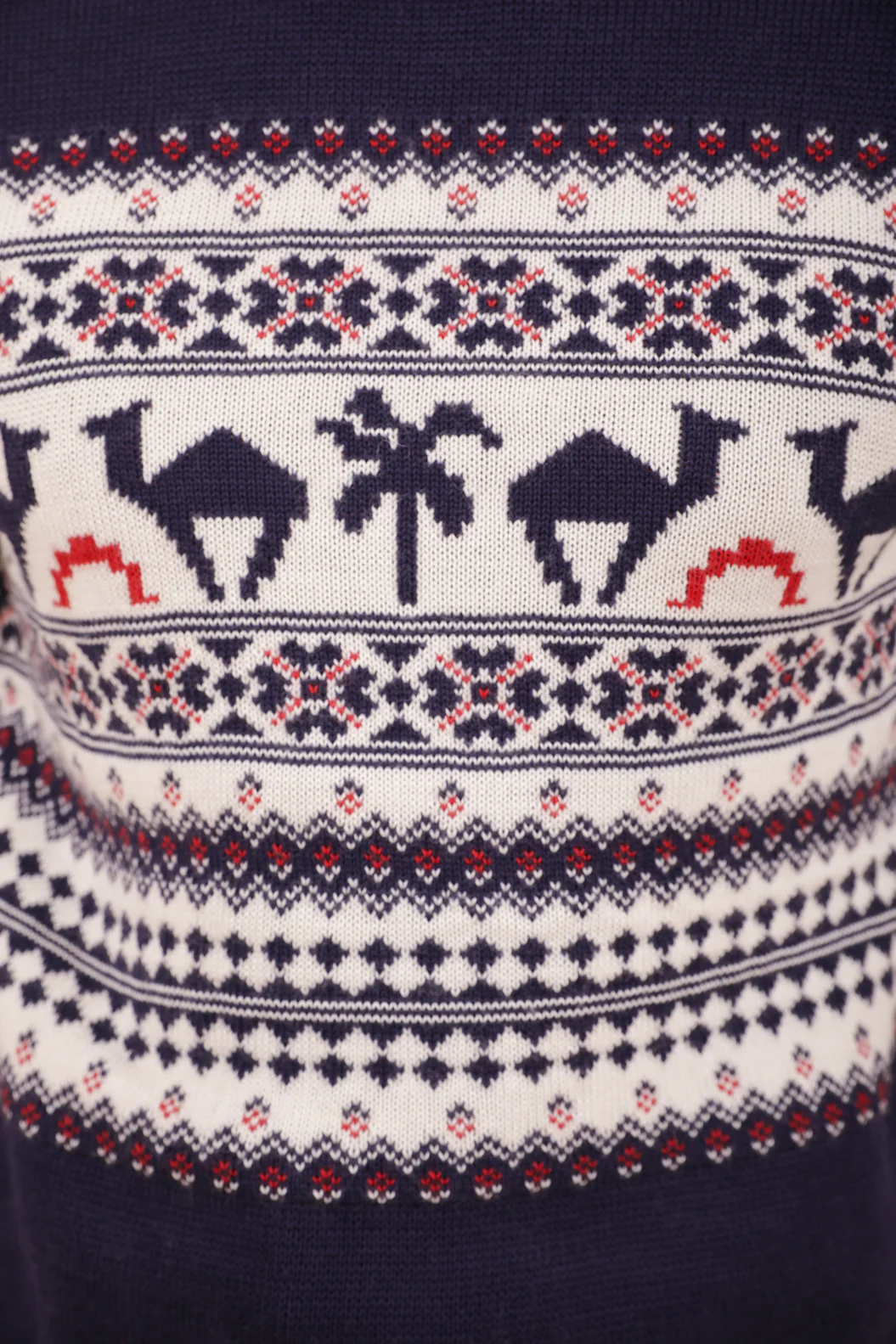 Oh Oh Oh !La fin d’année en mode fêtes, dunes et dromadaires… Découvrez notre tout nouveau : – pull en jacquard– le mariage parfait du ‘xmas jumper’ à l’anglaise, et des vibrations sud-méditerranéennes– motifs dromadaire et palmier du désert– col rond– base bleu navy et motifs écru et rouge Coupe droite proche du corps.Si vous […]