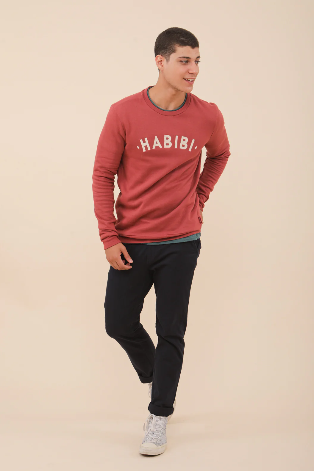 Notre basique intemporel : le sweat en molleton ‘Habibi’.