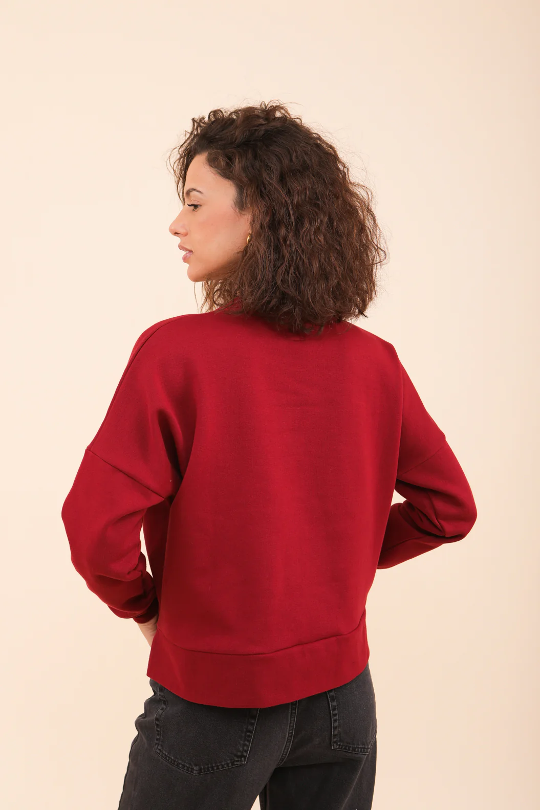 – coupe légèrement ‘croppée’, des manches tombantes pour un léger aspect ‘loose’ et des petites fentes sur les côtés