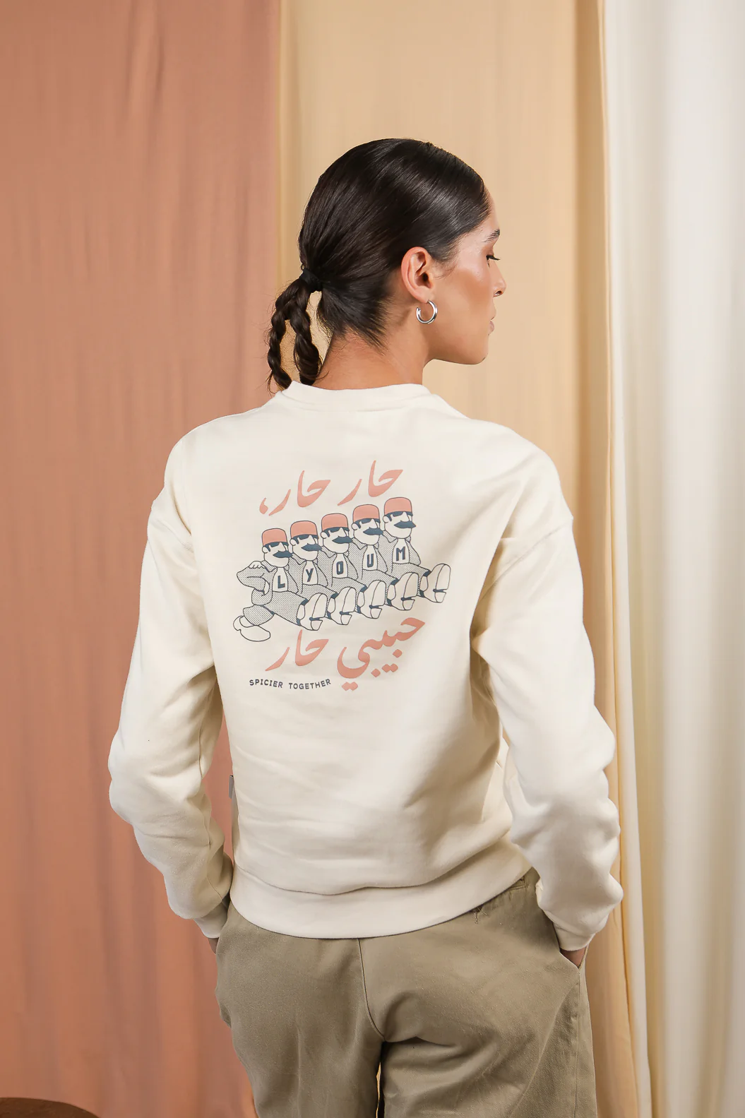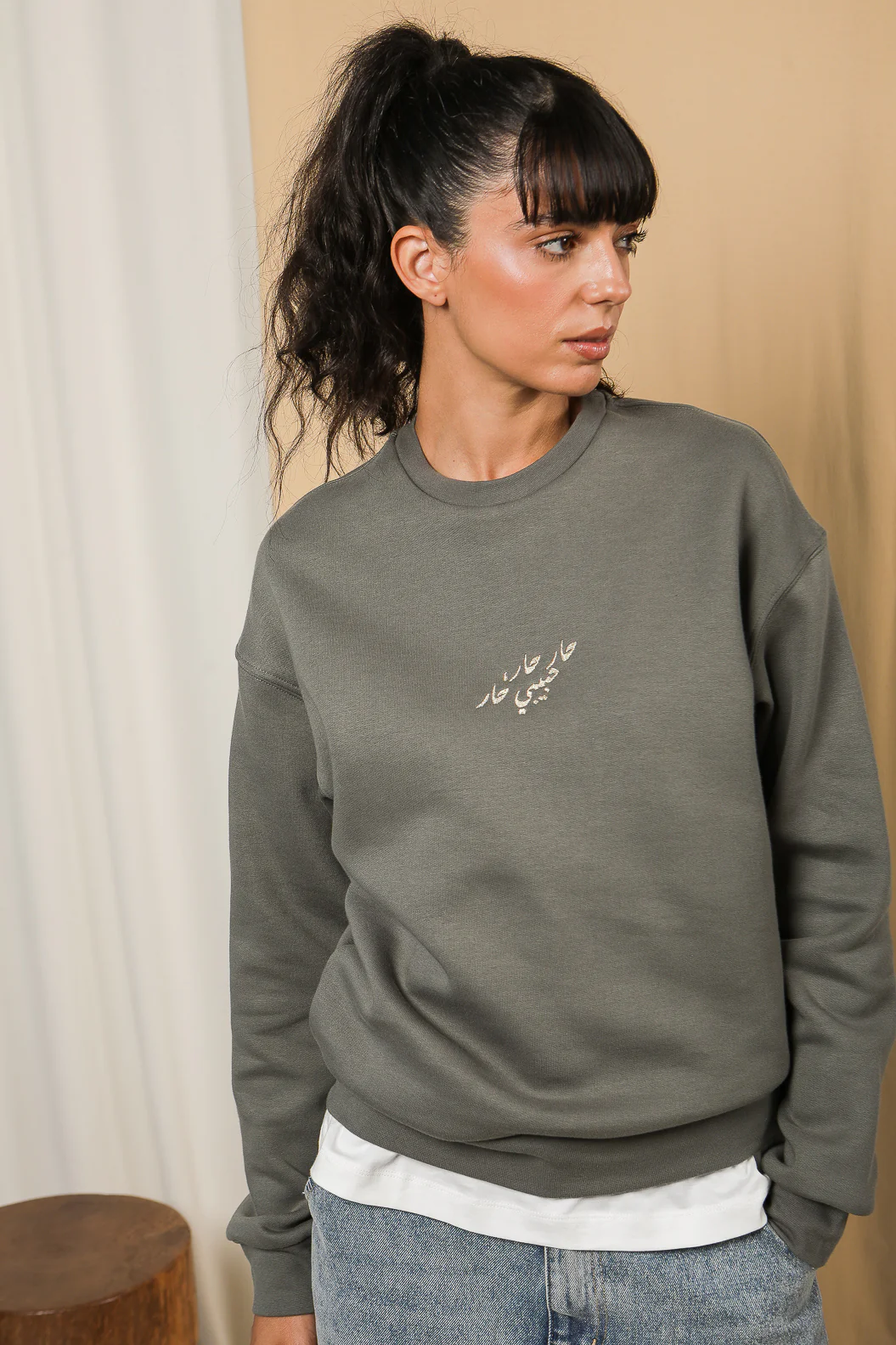 – broderie bicolore Habibi (‘Mon Amour’ en arabe) en écru/beige