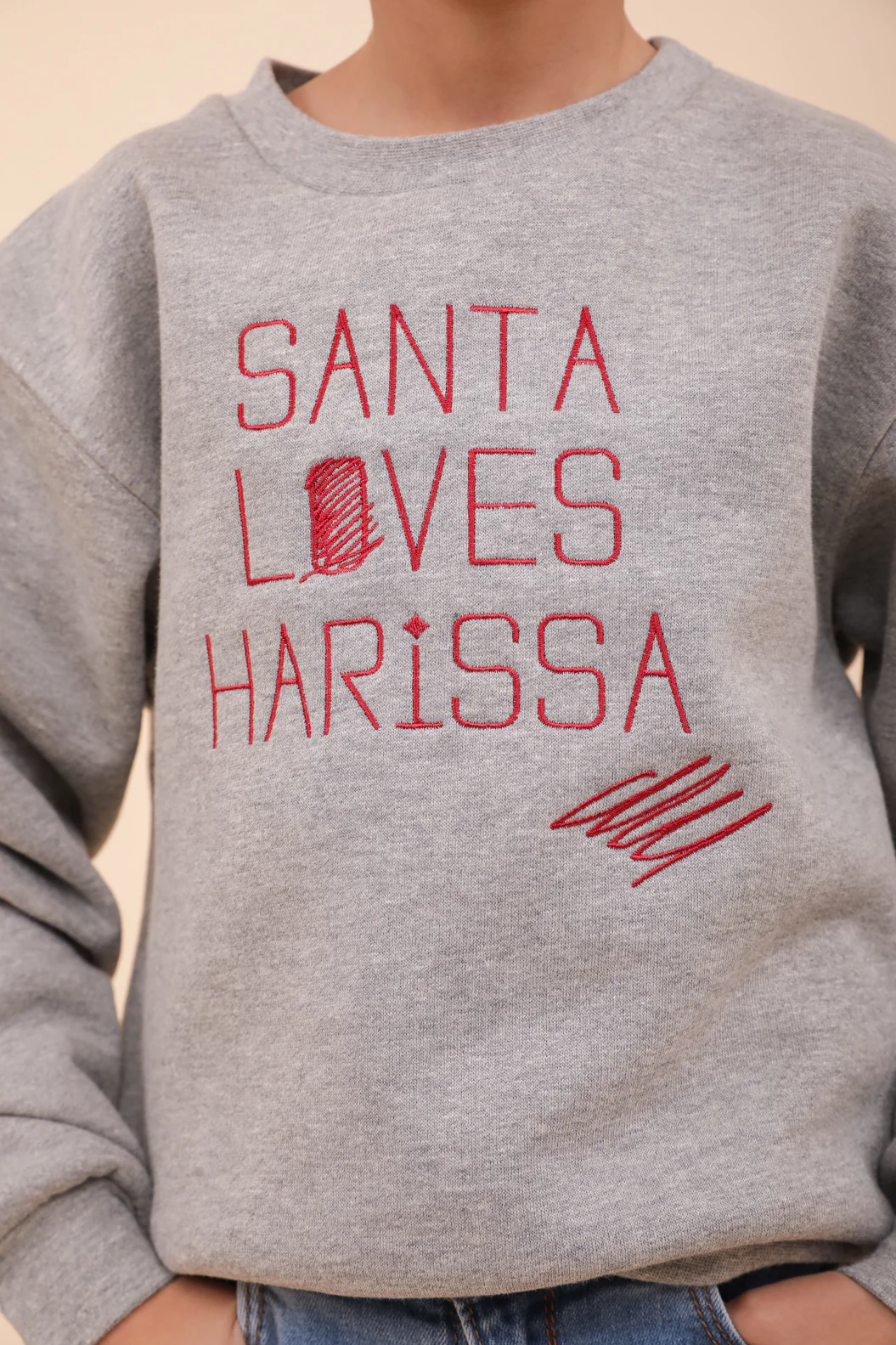 – message ‘Santa loves Harissa’ brodé dans une couleur rouge brillant
