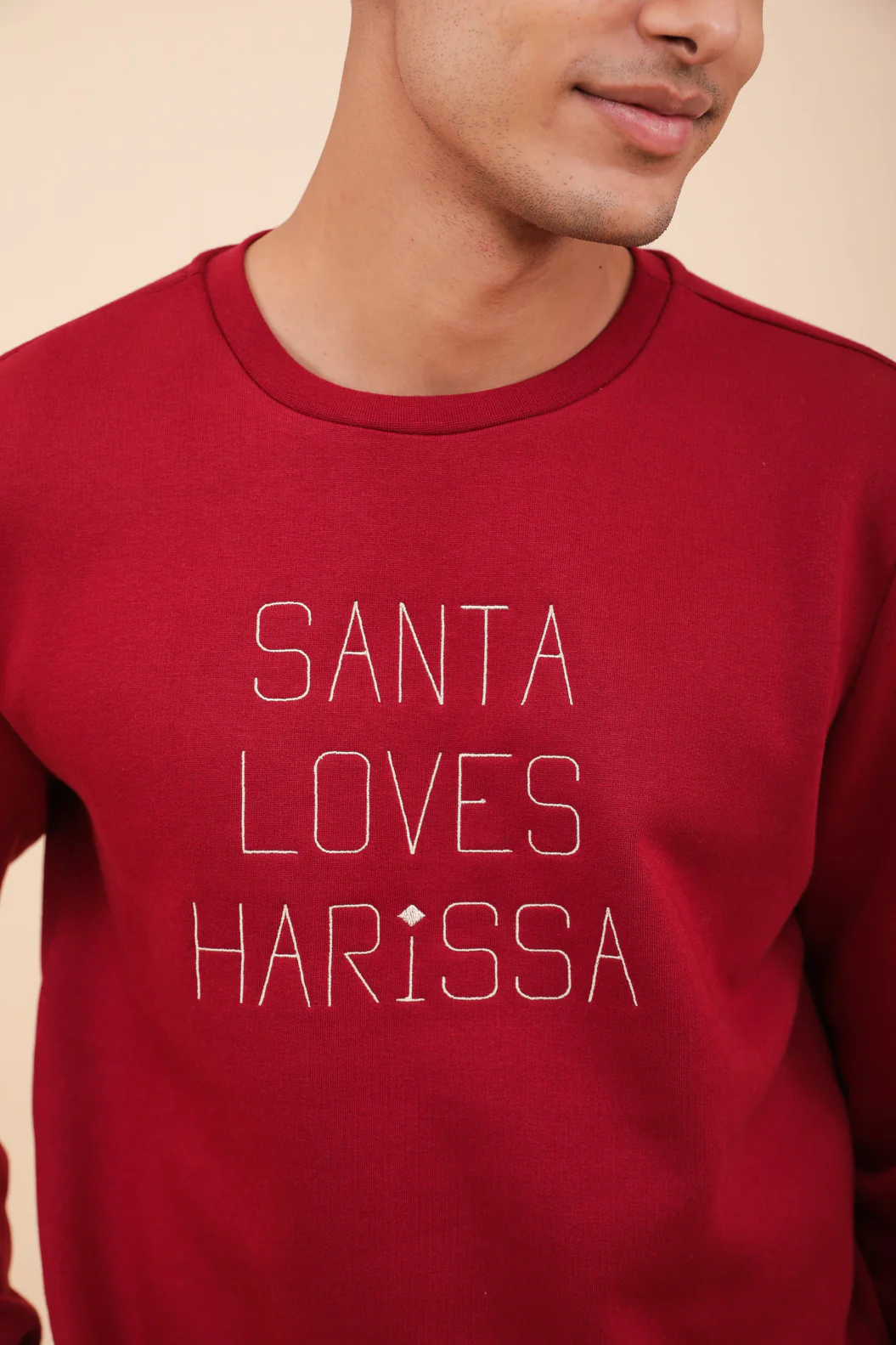 – Broderie ‘Santa loves Harissa’ sur le devant, couleur beige