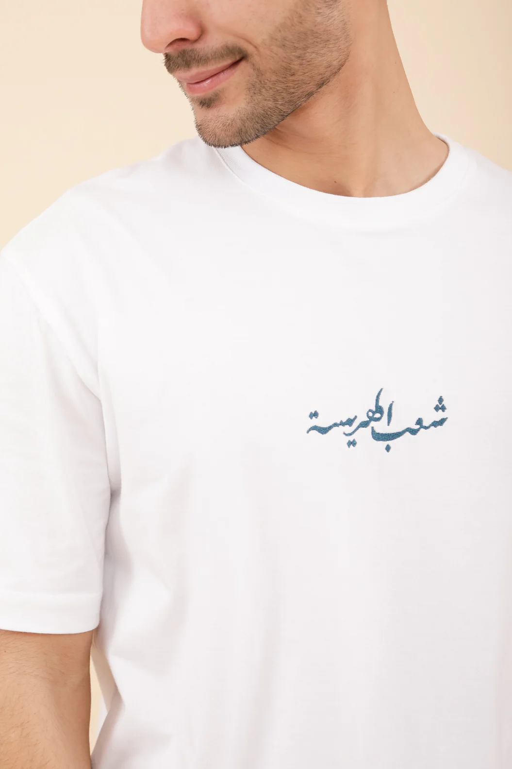 ‘Harissa People’ en calligraphie arabe brodé en bleu canard.