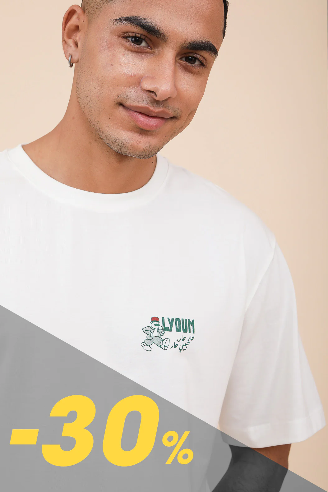 – sérigraphie LYOUM : ‘Yalla’ sur le devant, couleur blanc-coquillage.