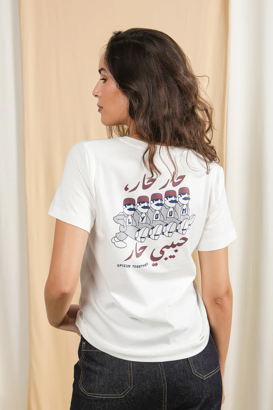 – Sérigraphie Habibi en arabe, rose brillant, pour un détail unique et délicat sur le devant.