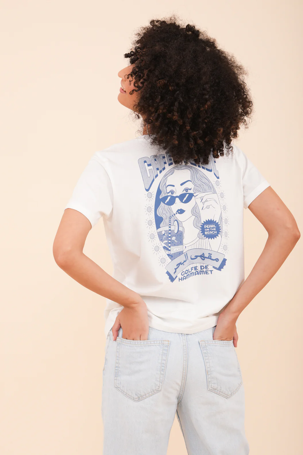 – Sérigraphie ‘La Mer Méditerranée’ en écru, mélange subtil d’arabe et de français sur le devant.