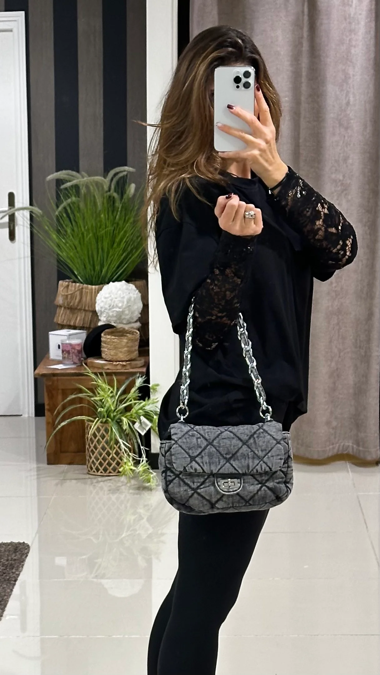 On adore ce T-shirt noir avec ses manches dentelle pour un effet chic décontracté !