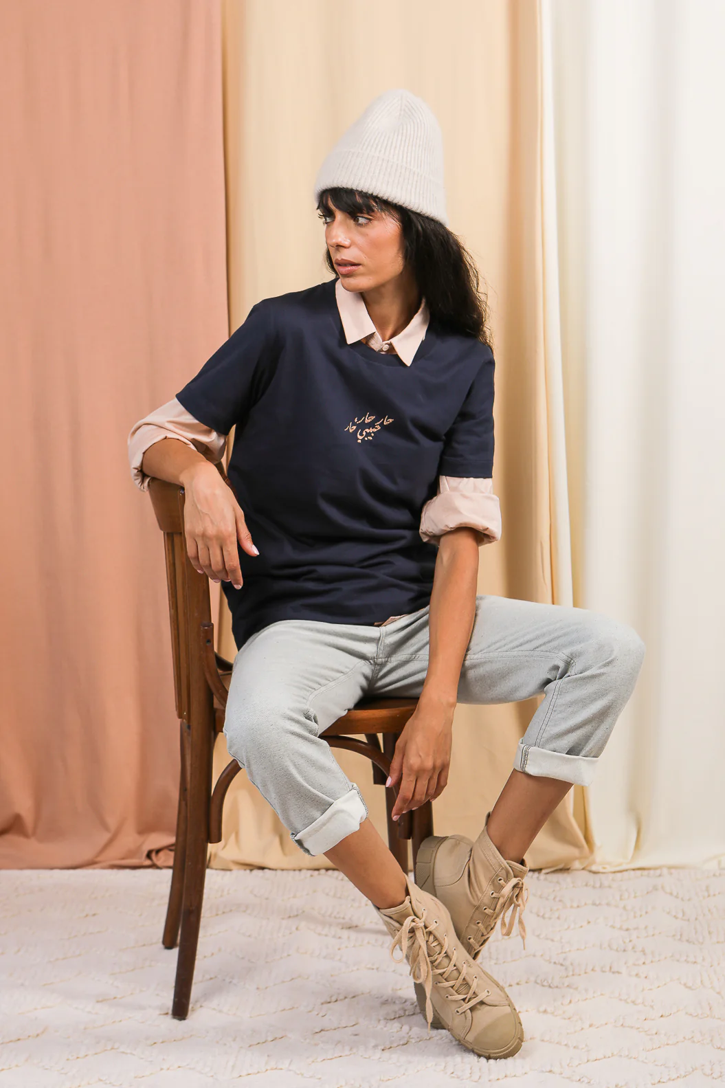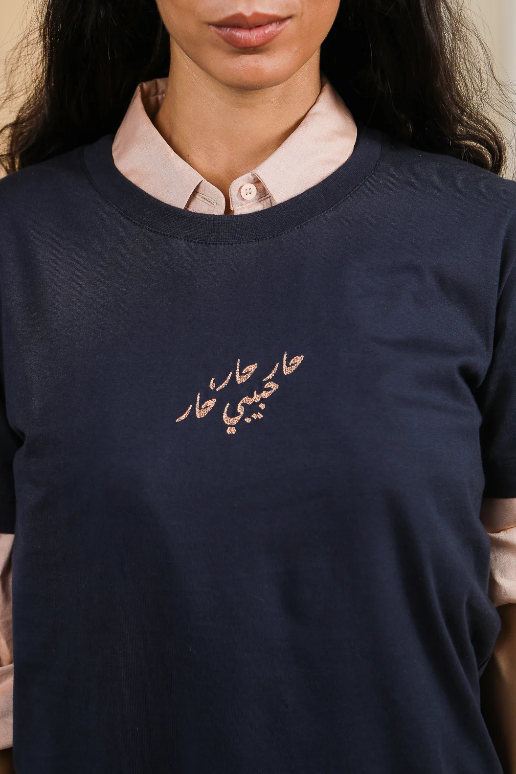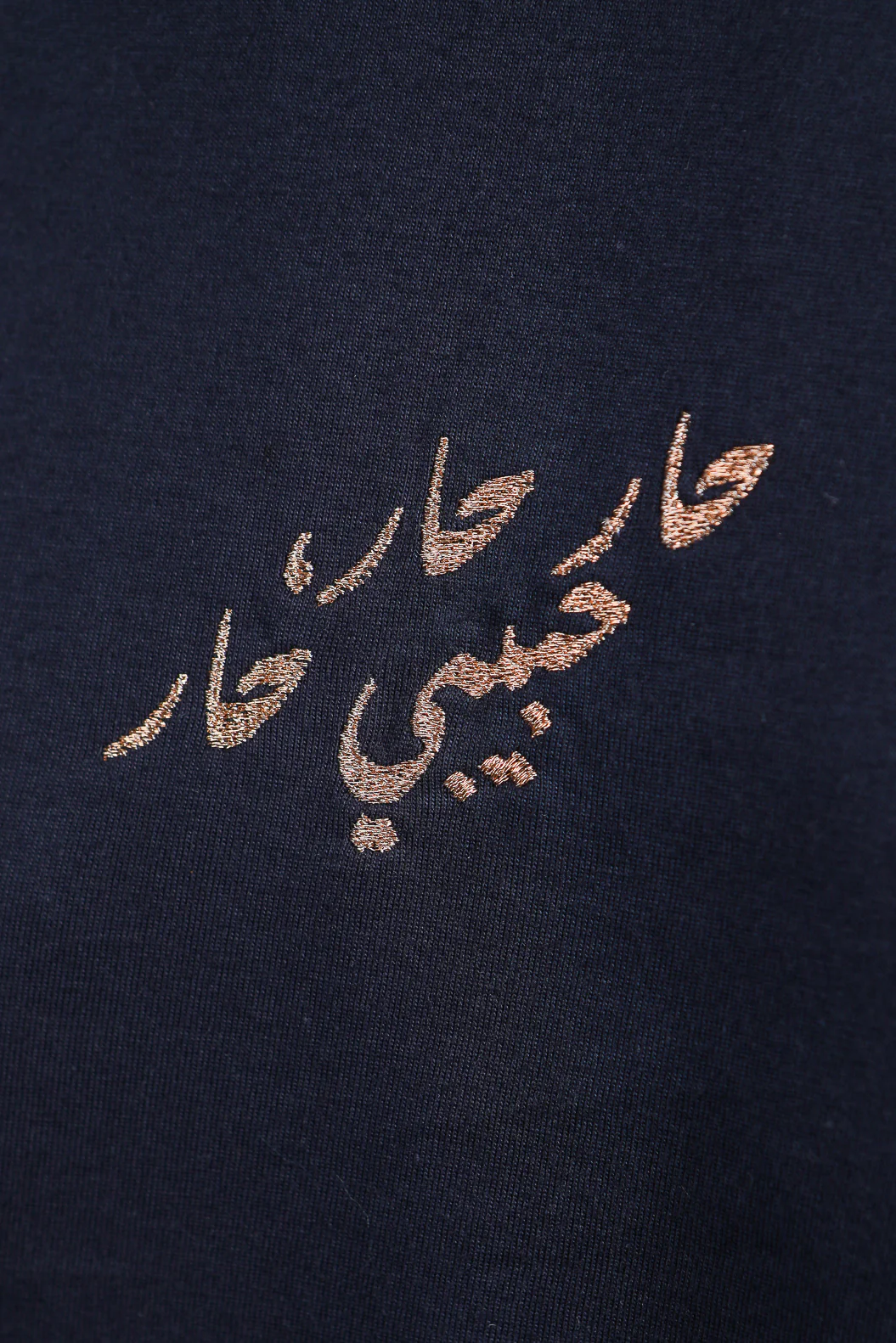 – Broderie Habibi Spicy en arabe, rose brillant, pour un détail qui fait toute la différence.